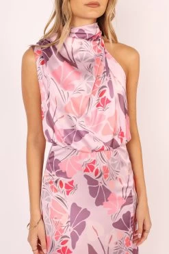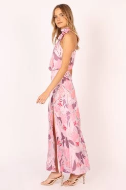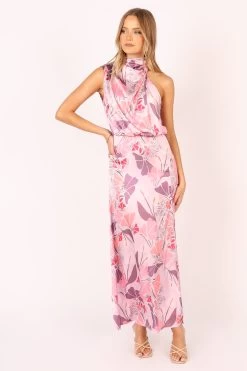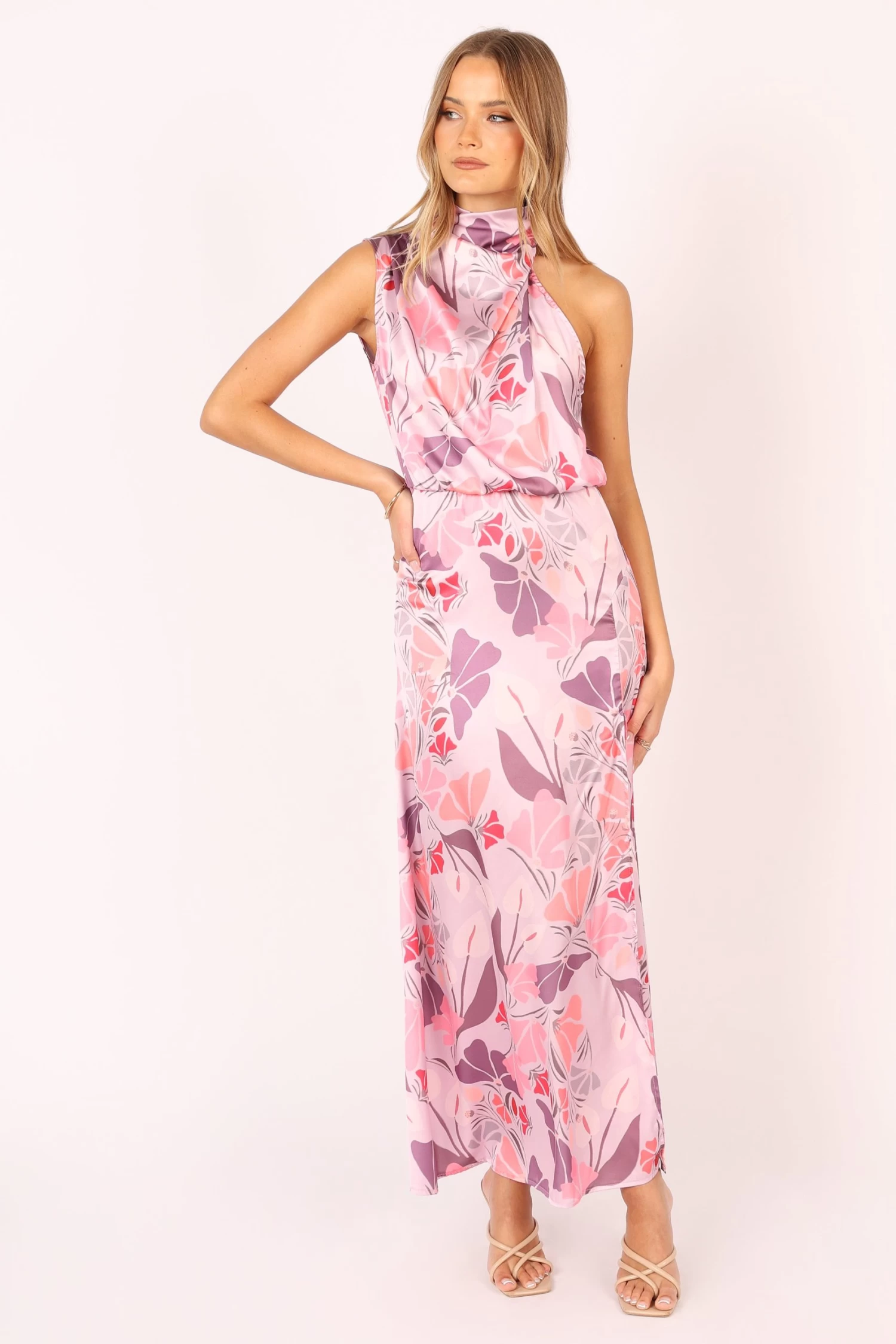 | DETAILS This beautiful maxi dress is perfect for any event. Its classic yet modern design features an asymmetric high round neckline, a back neck opening with button close and gathered pleated detail on the neckline. It has an elasticised waist that flatters your figure and a flattering front split.