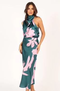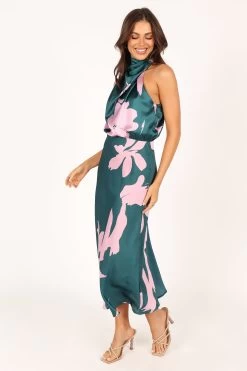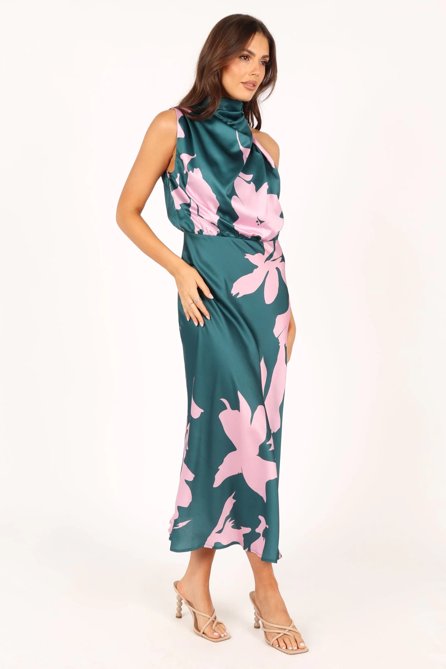 | DETAILS Look and feel your best in this stunning event wear dress! Featuring a midi length, an asymmetric high round neckline with gathered pleat detail, plus a back neck opening with button close, it’s the perfect party dress for any special occasion. Not only does it look fabulous, but it feels as good as it looks too — crafted from a soft satin feel just for extra comfort.
