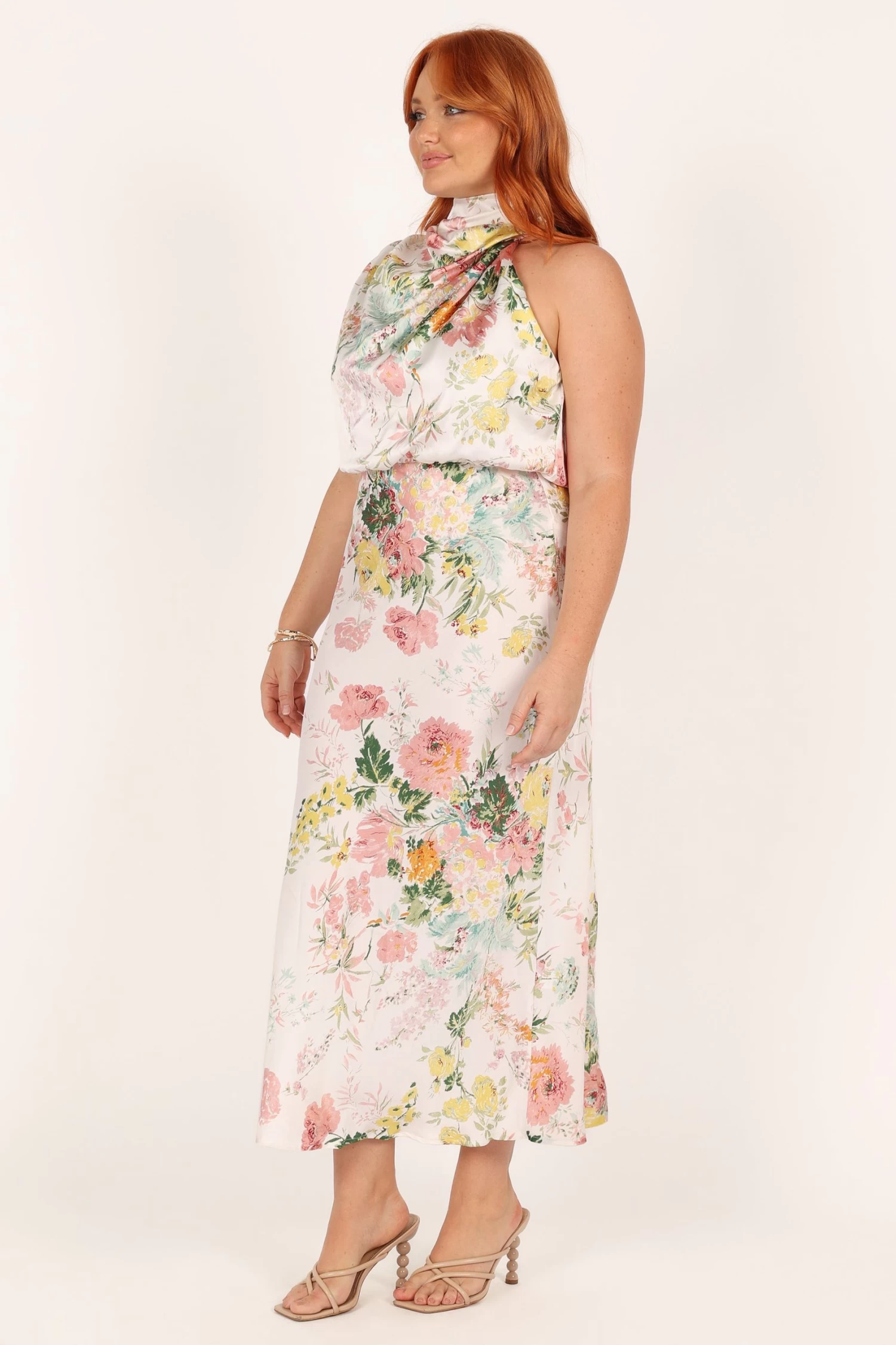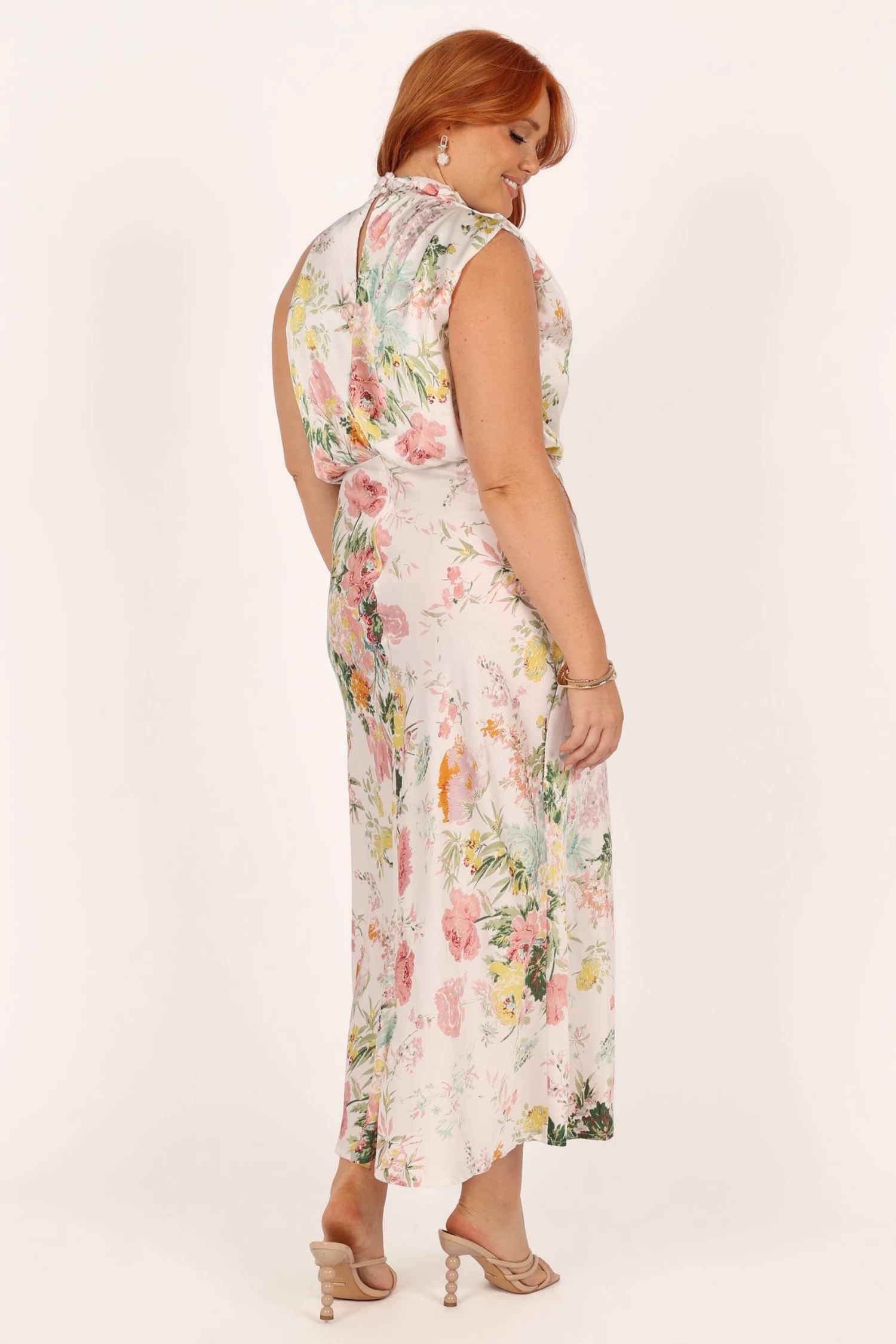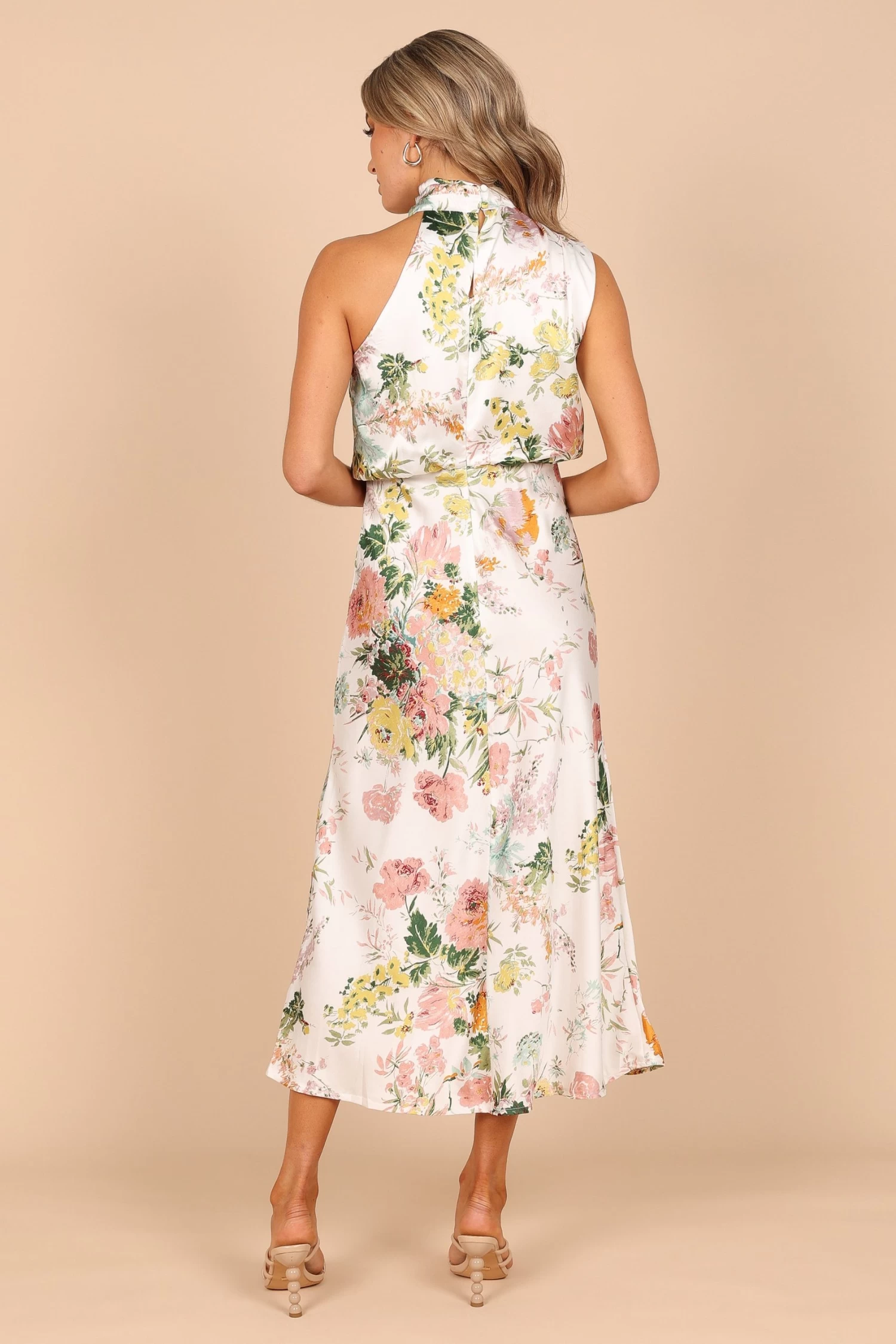 | DETAILS Look and feel your best in this stunning event wear dress! Featuring a midi length, an asymmetric high round neckline with gathered pleat detail, plus a back neck opening with button close, it’s the perfect party dress for any special occasion. Not only does it look fabulous, but it feels as good as it looks too — crafted from a soft satin feel just for extra comfort.