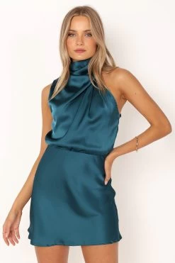 | DETAILS Look and feel your best in this stunning event wear dress! Featuring a mini length, an asymmetric high round neckline with gathered pleat detail, plus a back neck opening with button close, it’s the perfect party dress for any special occasion.