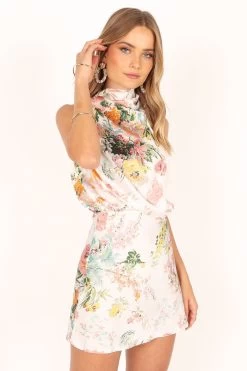 | DETAILS Look and feel your best in this stunning event wear dress! Featuring a mini length, an asymmetric high round neckline with gathered pleat detail, plus a back neck opening with button close, it’s the perfect party dress for any special occasion. Not only does it look fabulous, but it feels as good as it looks too — crafted from a soft satin feel just for extra comfort.