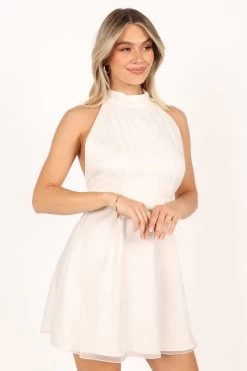 | DETAILS Get ready to turn heads in this stunning halterneck mini dress! The beautiful open back with tie close feature captures the eye and adds a feminine touch, while the front pleat detail gives it an extra special look.