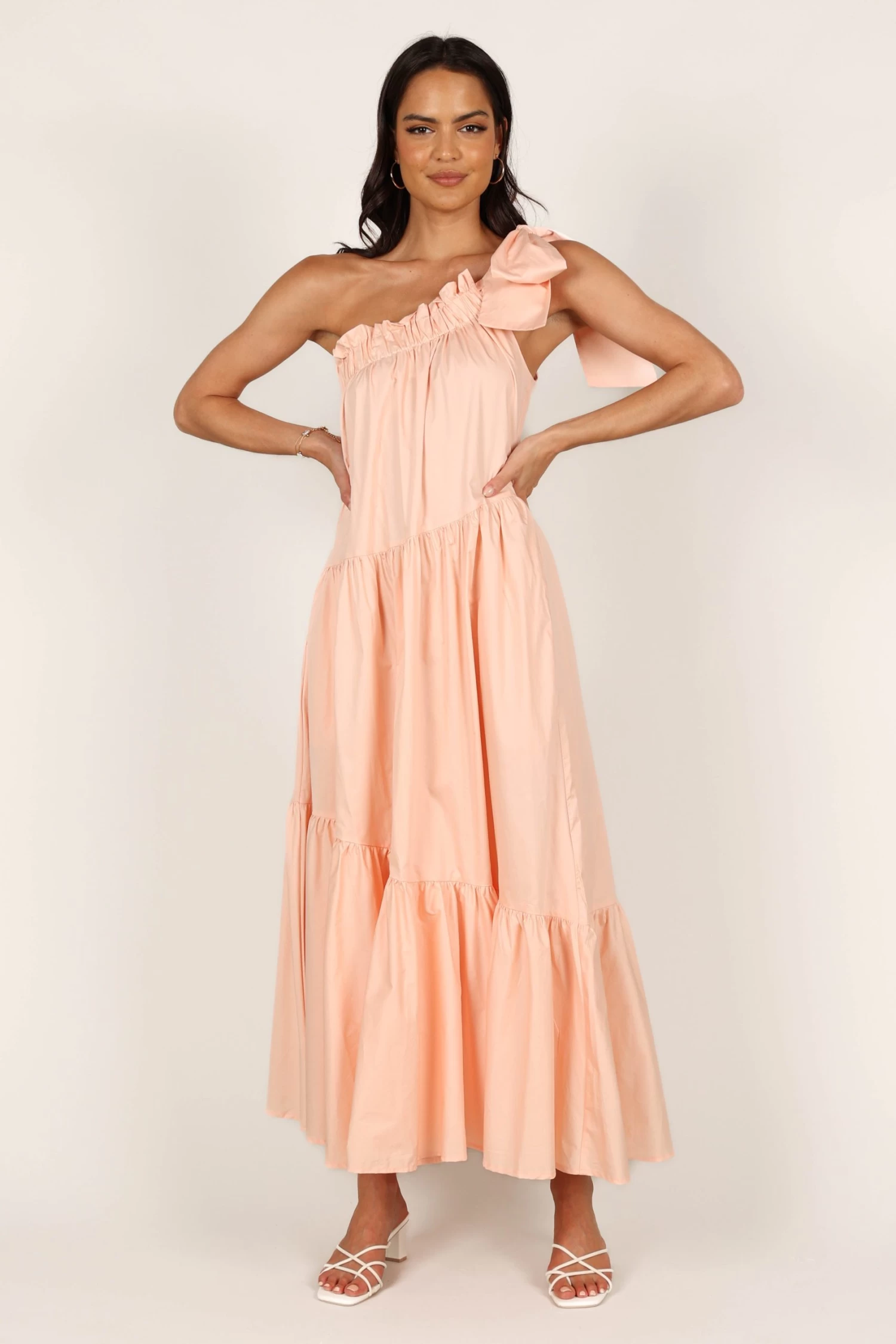 | DETAILS Ready to turn heads? Make a statement with this eye-catching one shoulder dress! Featuring an asymmetrical neckline, shoulder tie detail and functional side pockets, you’ll be able to keep your essentials close at hand while looking amazing. The maxi length and relaxed fit make this the perfect party piece for any special occasion.