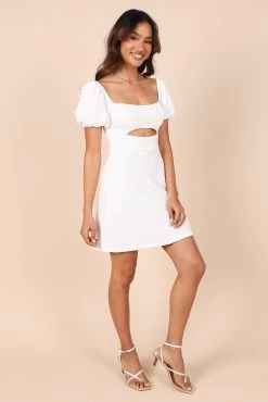 | DETAILS Make a bold statement in this chic above-knee length dress! Featuring a square neckline, short sleeves with elasticised cuffs and front cutout detail, you’ll be the life of the party. The back invisible zip ensures a perfect fit every time.
