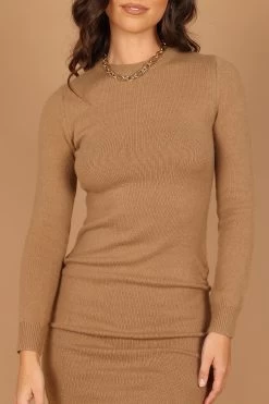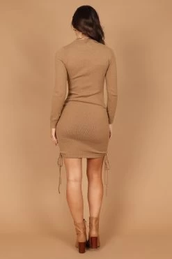 Baxter Cinched Side Mini Knit Dress – Tan