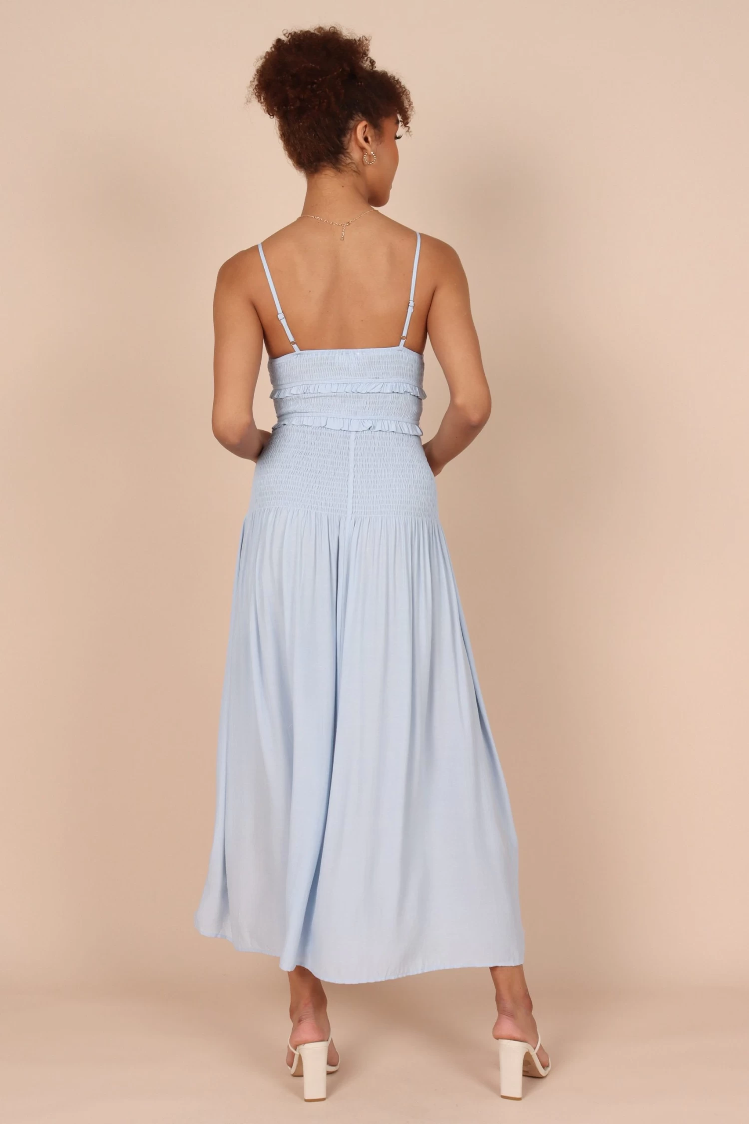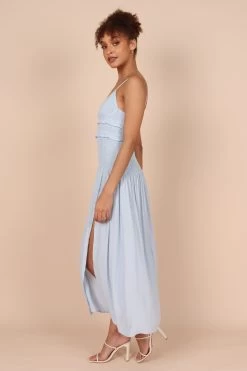Bell Shirred Midi Dress – Blue