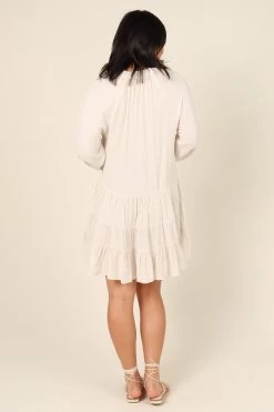 | DETAILS Make an entrance in this smock style mini dress! With a v-neckline and long sleeves with elasticised ruffle cuffs, this cute number will be sure to get you noticed. The drop tier skirt design adds extra drama to the look, while the high low hemline ensures maximum movement.