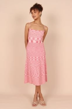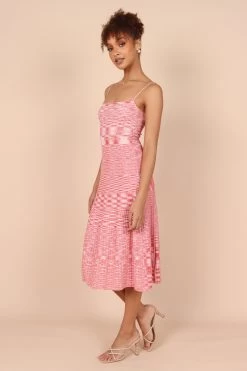 | DETAILS This stunning midi dress is the perfect choice for any special occasion! The square neckline, thin adjustable straps and A-line skirt design perfectly flatter your figure while the stretch ribbed knit fabric keeps you comfortable all night long.