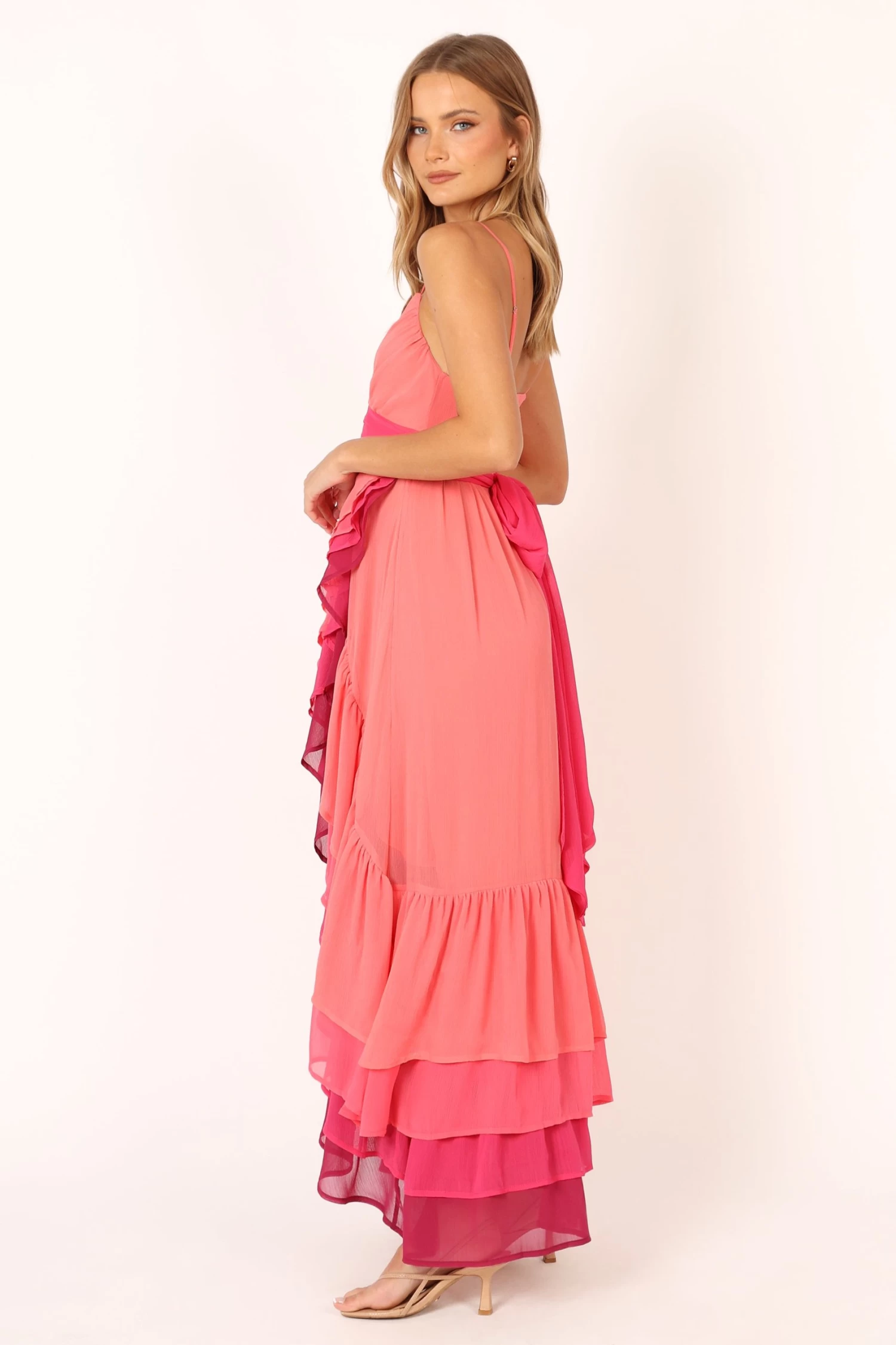 | DETAILS Be the life of the party in our stunning coral and hot pink maxi dress! With a classic V-neckline, thin adjustable straps, and gathered bodice detail, this maxi dress is perfect for your next event. What’s more, it features an invisible zip with hook and eye clasp at the back, as well as a tie detail that gives off an elegant vibe.