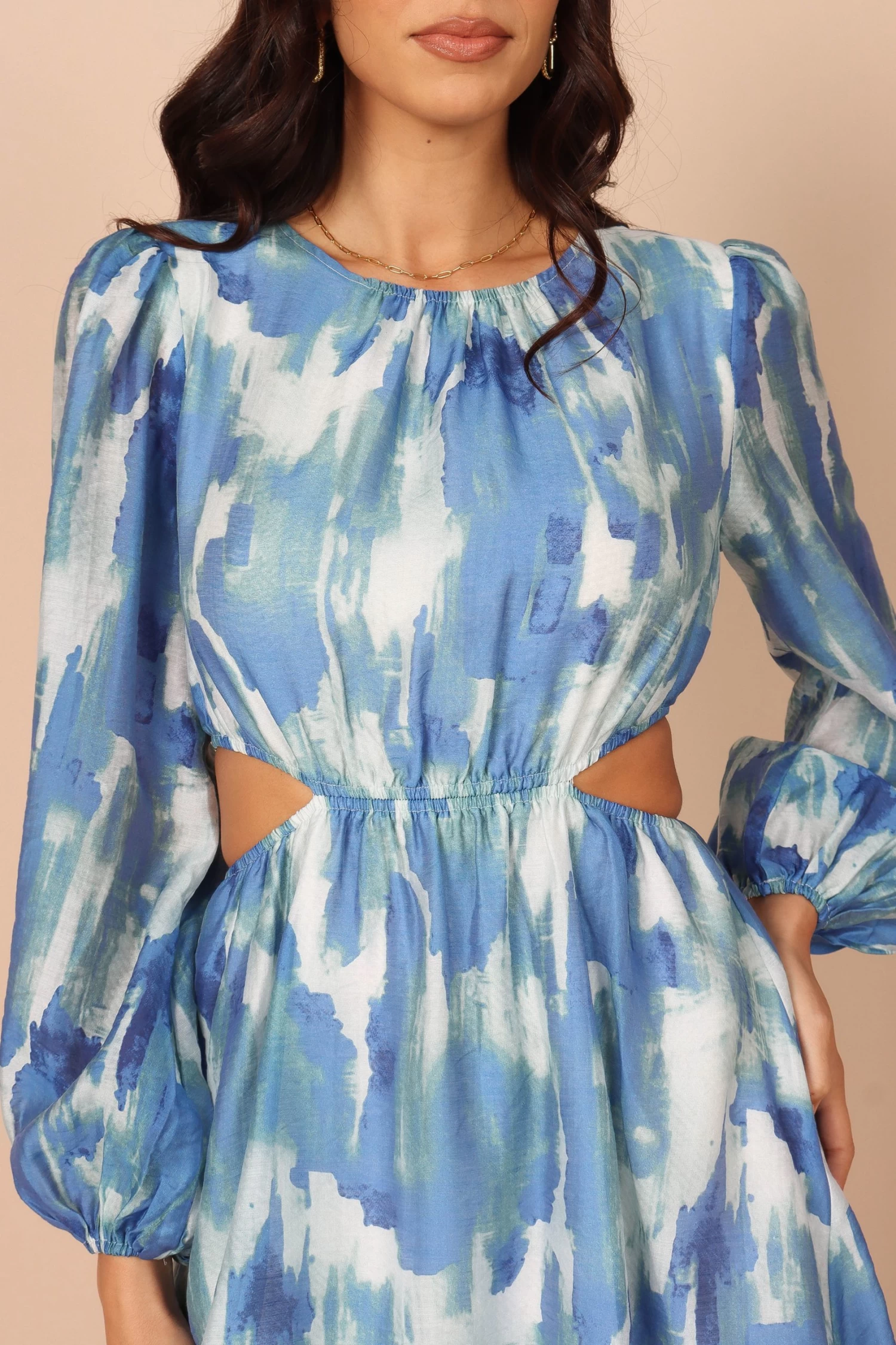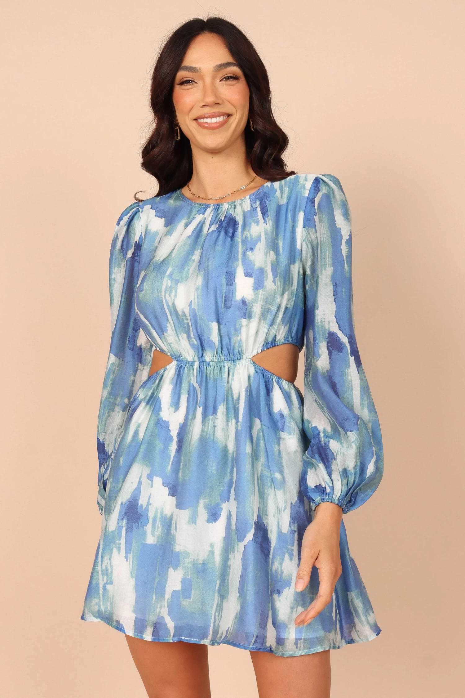 | DETAILS The mini dress of your dreams is finally here! The abstract Dress has a flattering above knee length cut, a round neckline and long sleeves with elasticised cuffs. With side cutout details and a back neck opening with button close, this mini dress is both stylish and comfortable.