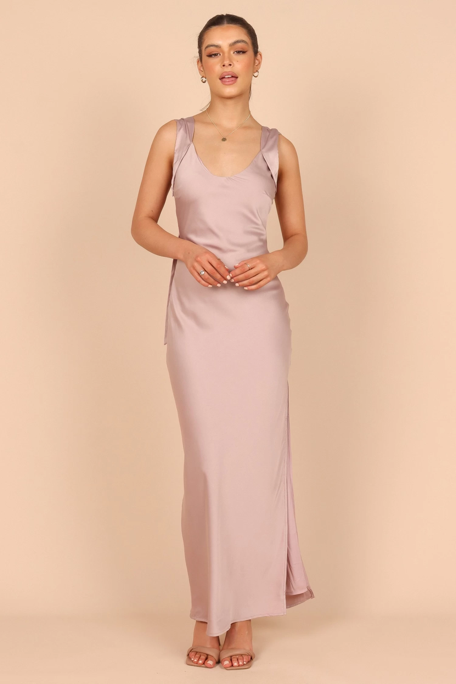 | DETAILS This maxi dress is all about effortless elegance. Its length will make you feel like a queen, while the round neckline and wide overlay adjustable straps give it an air of sophistication. The back tie cross over feature adds a touch of fun, while the invisible side zip with hook and eye ensures a secure fit.