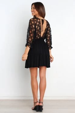 | DETAILS Unleash your inner flirty diva in this gorgeous above-the-knee dress! Its v neckline flatters your figure while the long sleeves with elasticised cuffs keep you feeling stylishly secure. The back cut out is highlighted by a delicate neck tie close.