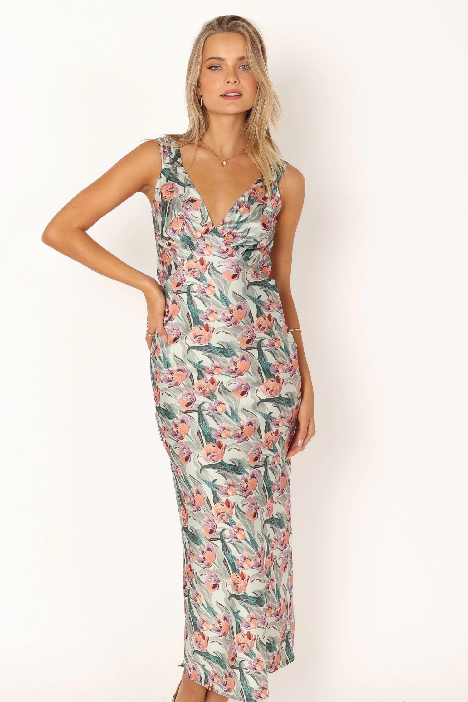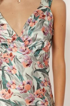 | DETAILS Introducing our stunning floral print midi dress that is perfect for your next date night or special occasion. This elegant piece features a flattering V neckline and non-adjustable straps, ensuring a secure yet comfortable fit.