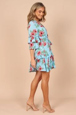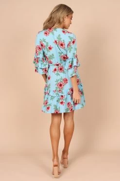 | DETAILS Get ready to turn heads in this stunning floral print dress! The above knee length and overlay neckline with button closure give it a sophisticated yet flirty feel. The mid length sleeves with ruffle detail add an extra touch of femininity, making this dress perfect for any occasion.