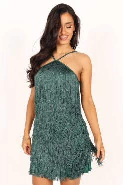 | DETAILS The perfect party piece, this mini dress is sure to make heads turn. Cut in a flattering halter neck line and finished with adjustable straps for optimum comfort, it’s accented with a fun tiered fringe design that moves elegantly with every step you take.
