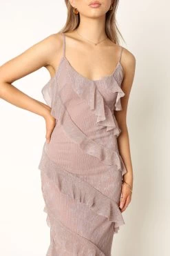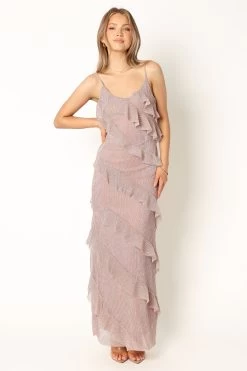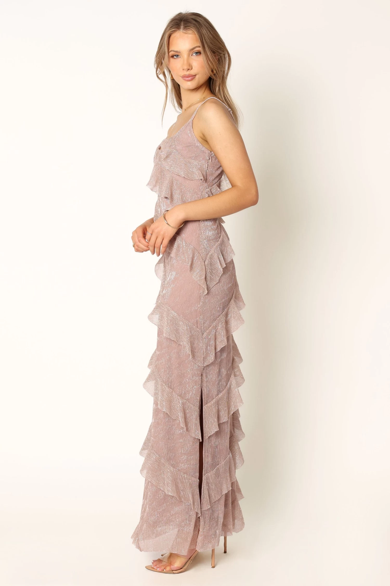 | DETAILS Are you ready to dress up for your next event? Look no further than our Ciao dress! This maxi length dress features a flattering v neckline, thin adjustable straps and an invisible side zip. The back of the dress is enhanced with a beautiful v detail. It also includes a ruffle feature which will make you stand out from the crowd.