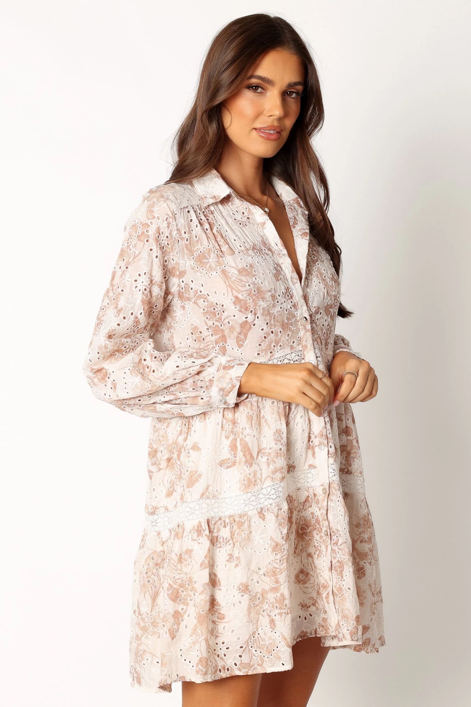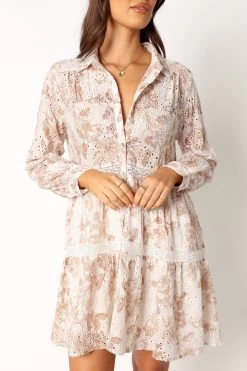 | DETAILS Introducing a perfect mini dress to add a playful and trendy touch to any wardrobe. Crafted with broderie anglaise scallop trim, this mini length dress is the epitome of fashionable style.