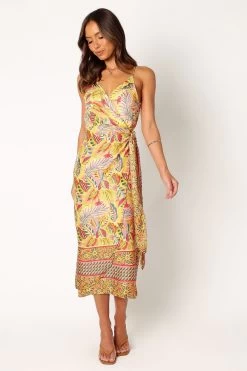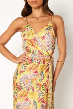 | DETAILS Our beautiful Clement Wrap Midi Dress makes a great addition to any summer wardrobe. The comfortable thin adjustable straps allow you to adjust the fit of this dress just the way you like it, and the attached waist tie closure adds extra security.