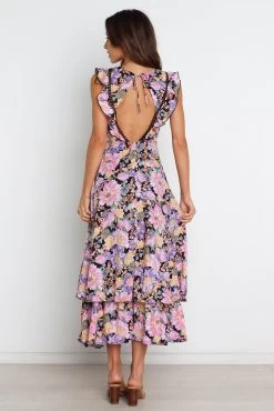 | DETAILS Make a statement in this bold and beautiful maxi length dress! With its intricate trim lace and ruffle detail on the bodice, an open back feature, neck tie close, and side invisible zip closure – you’re sure to feel fabulous!