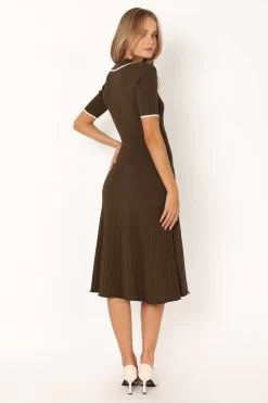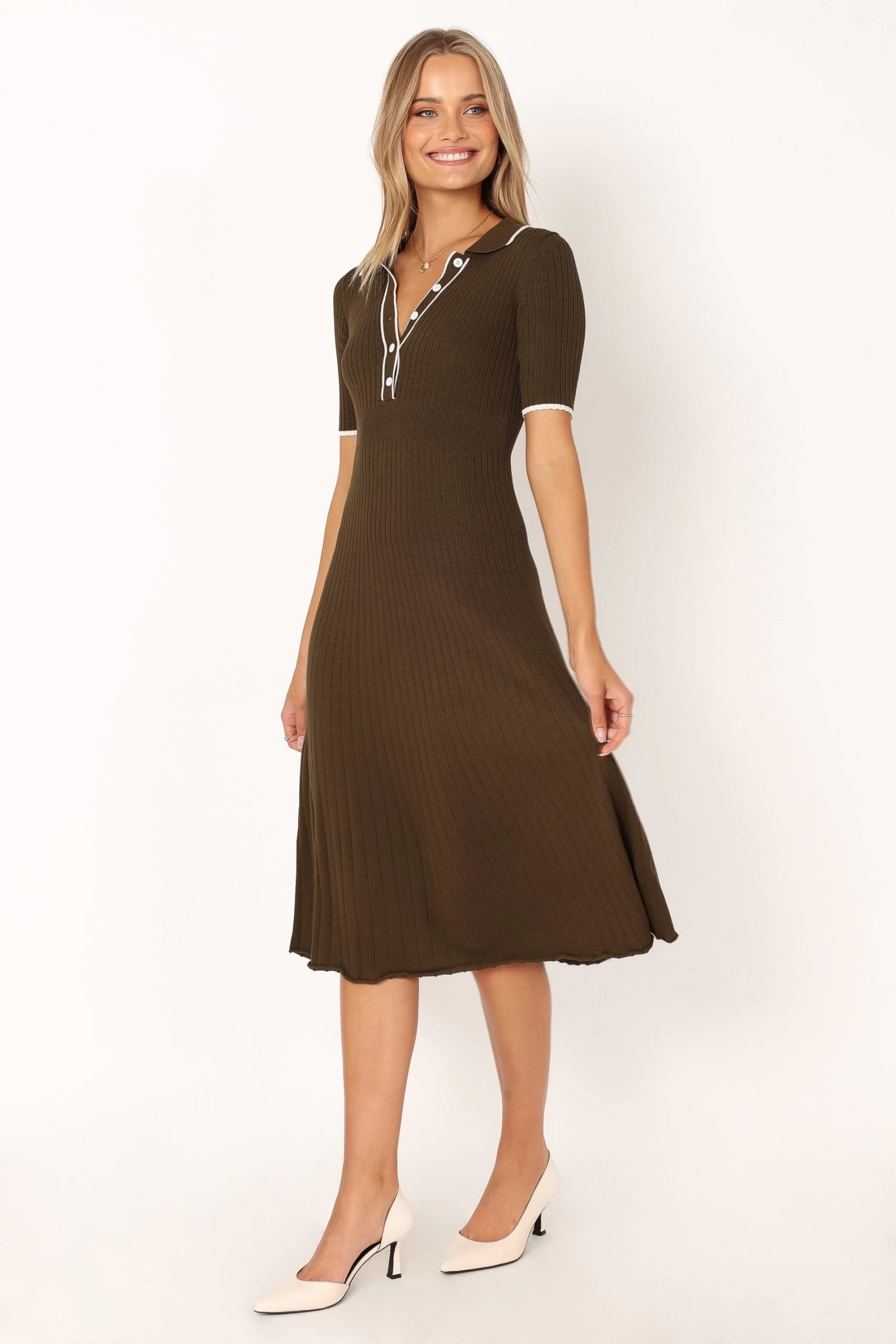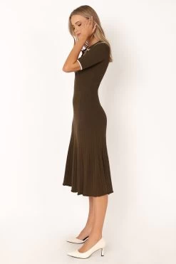 | DETAILS You’ll be ready for any occasion in this gorgeous midi dress! The classic olive color is timeless and flattering, pairing perfectly with the stretch ribbed knit material that hugs your curves to create an effortlessly stylish silhouette
