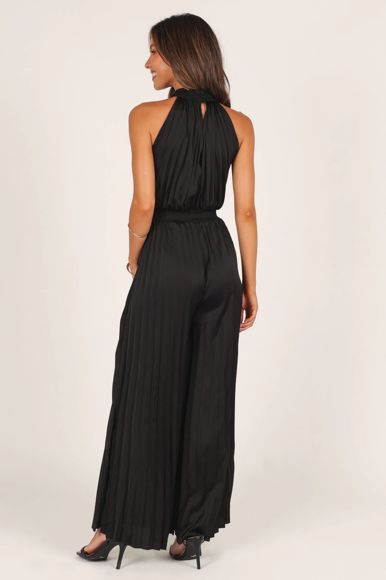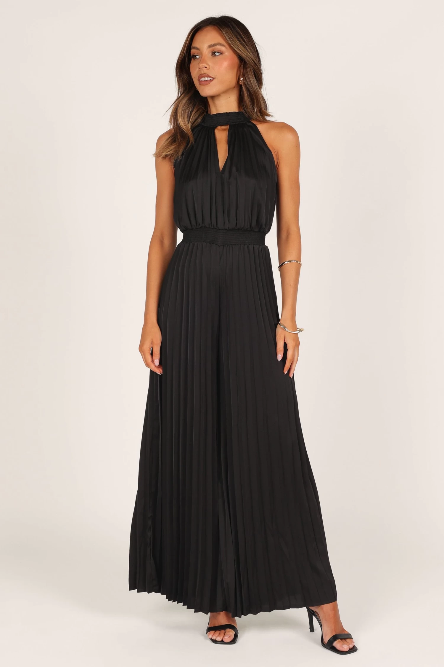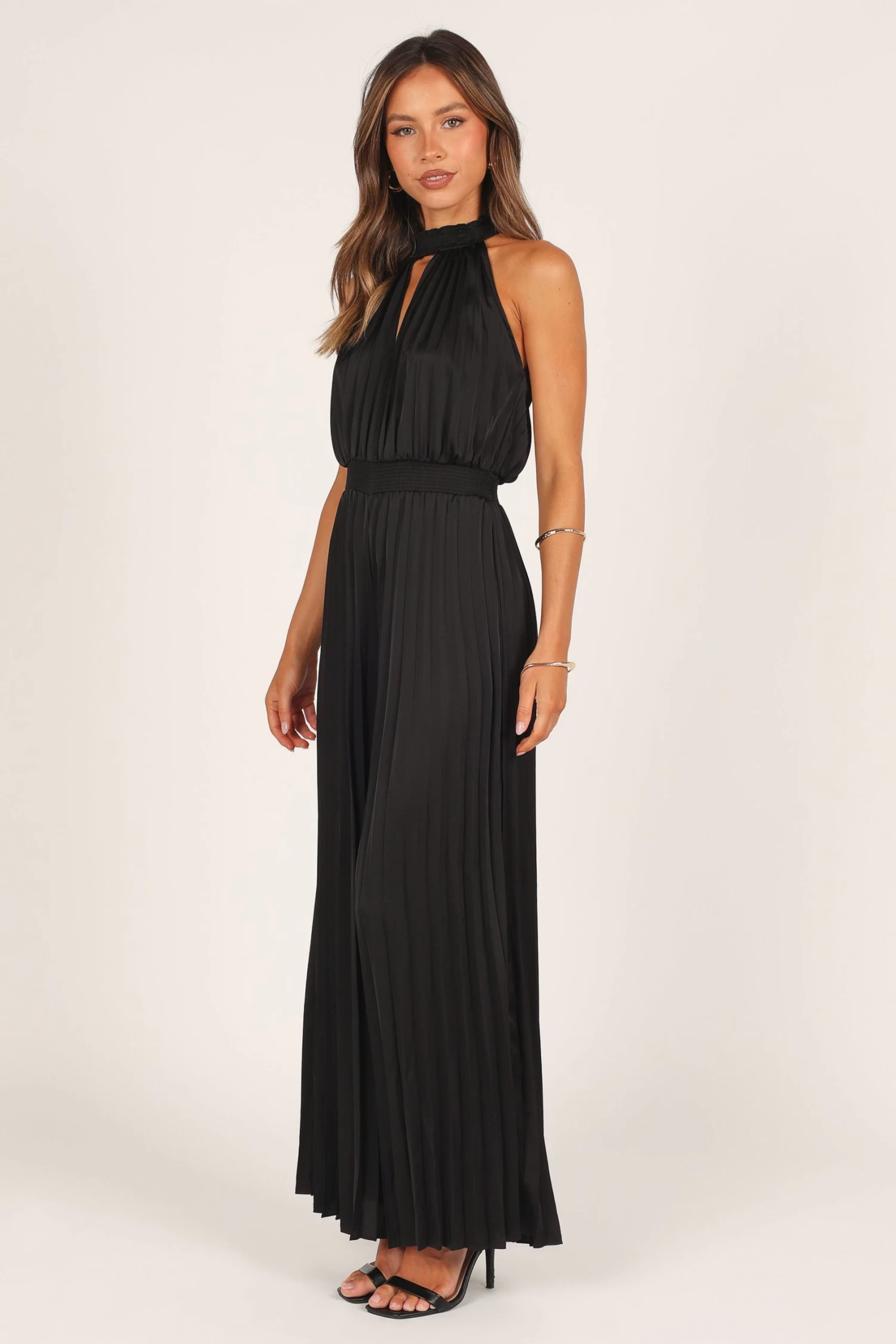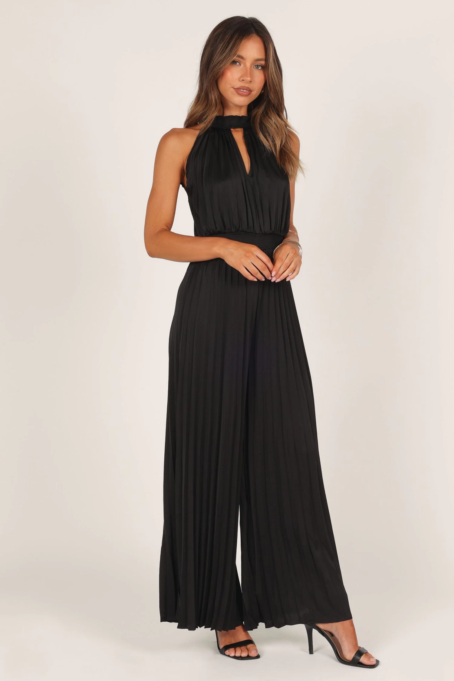 | DETAILS Dare to dazzle in this fabulous jumpsuit! The halter neckline with a button close is the perfect combination of style and comfort. With a front cut out detail, you’ll show off your best assets while still looking classy.