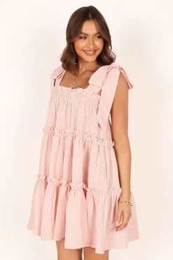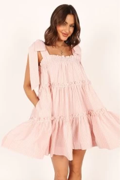| DETAILS This flirty mini dress is the perfect addition to your wardrobe! Featuring an above knee length, a straight elasticised neckline, tie close straps and functional pockets, you can style it however you want.