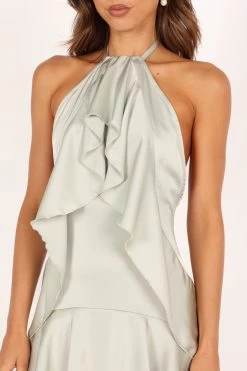 | DETAILS Feel glamorous and flirty in this beautiful halter style jumpsuit. The crossover neckline is adorned with a delicate resin feature, adding a touch of sparkle to the look. Reveal just enough skin with the open back, which fastens securely with a button closure.