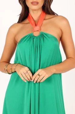 | DETAILS Get ready to shine this summer in this stunning halterneck style maxi dress. Crafted from a lightweight fabric, it features a beautiful halter neckline with front ring detail for extra fun. Have some fun with it and add a statement necklace and sandals to complete your look.