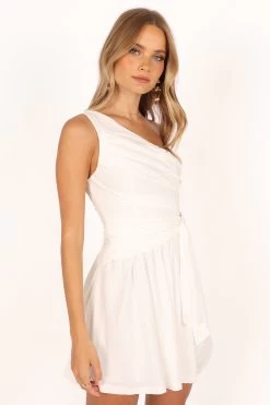 | DETAILS Make an entrance with this show-stopping one shoulder mini dress! With its asymmetric neckline and mid length puff sleeve, you’ll be sure to turn heads. The relaxed fit is complete with an invisible side zip, hook and eye clasp closure, and a drop tiered skirt design for added movement.