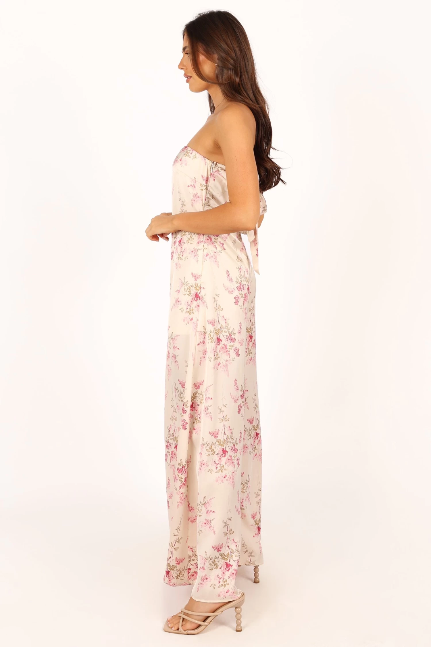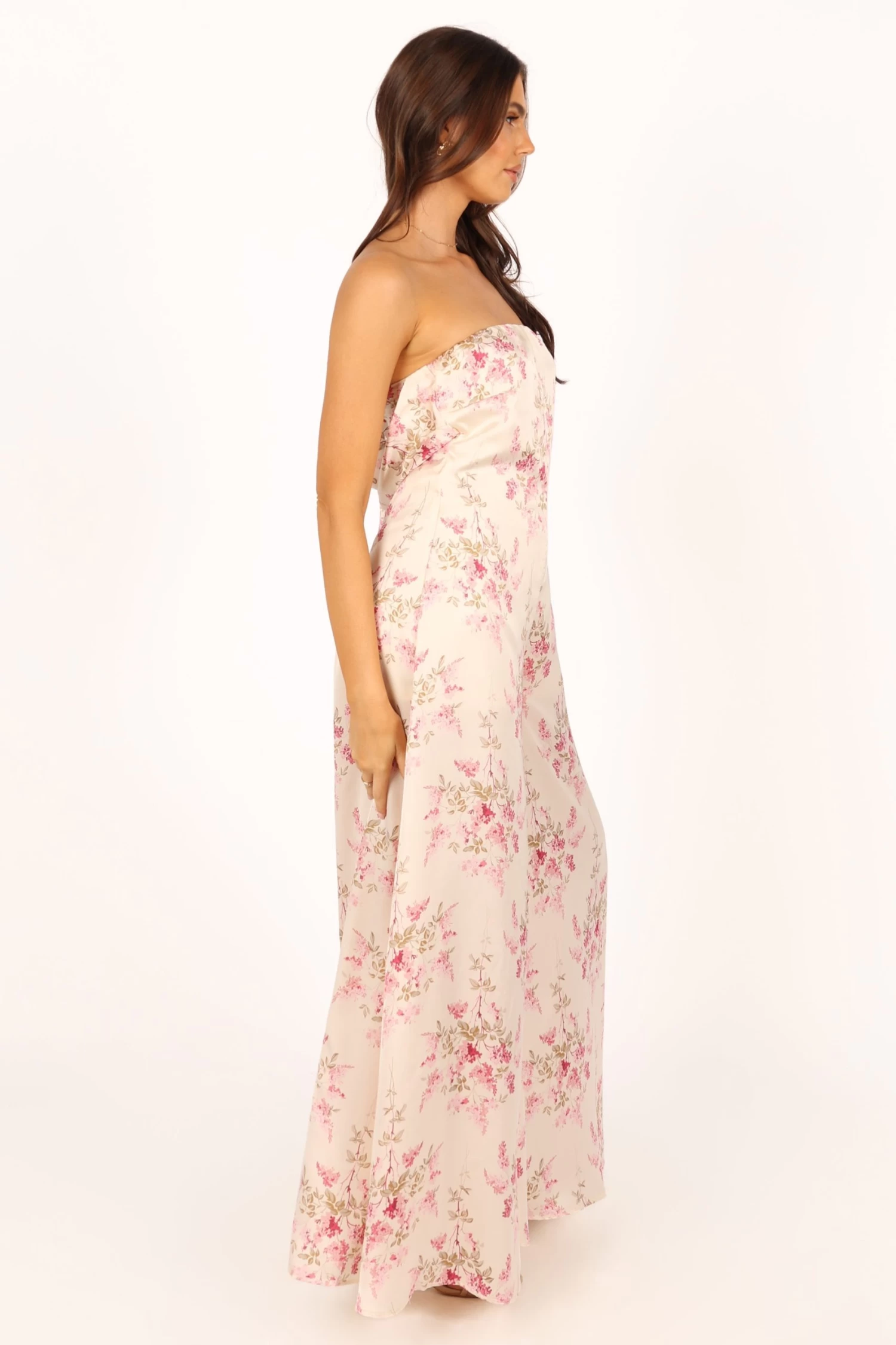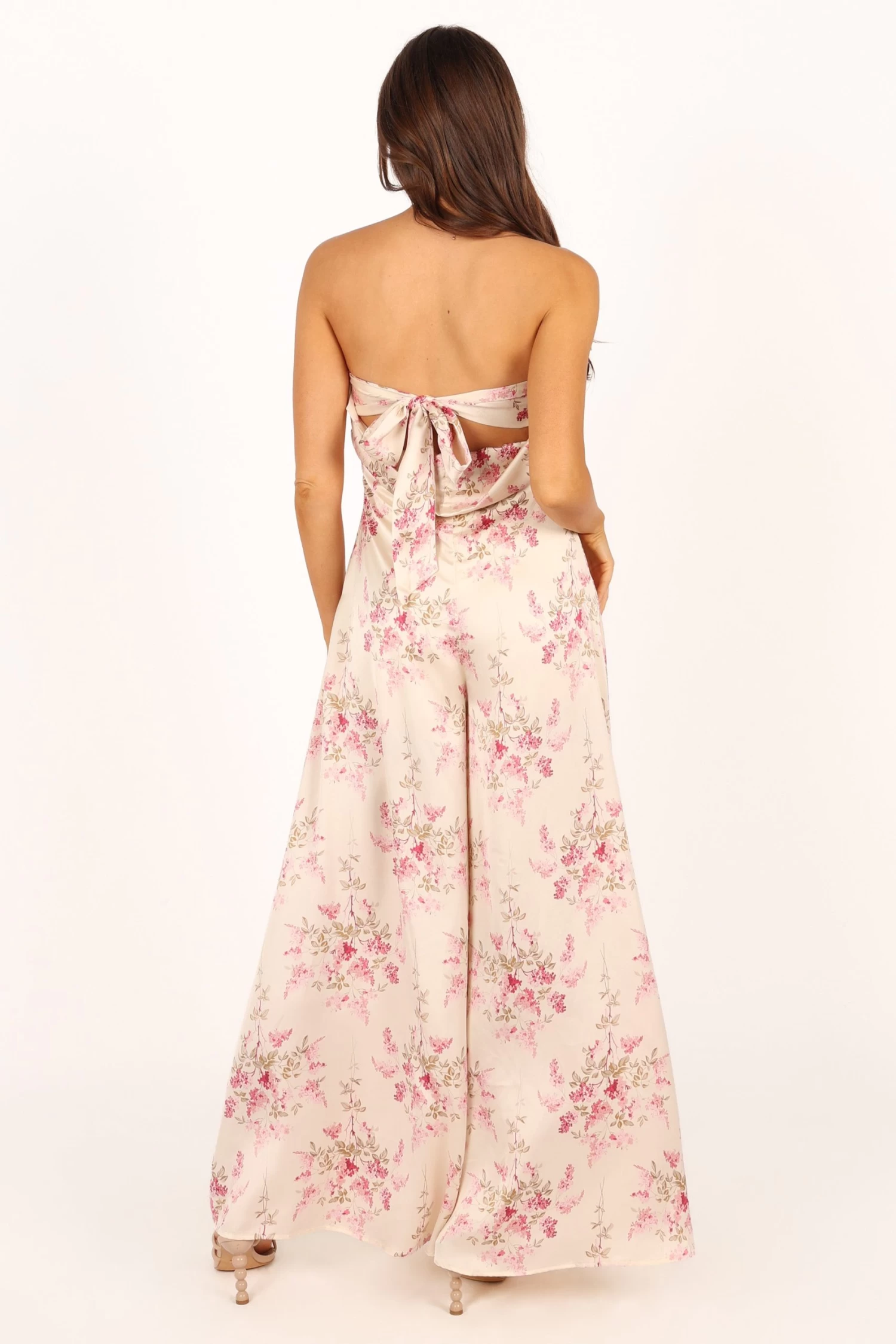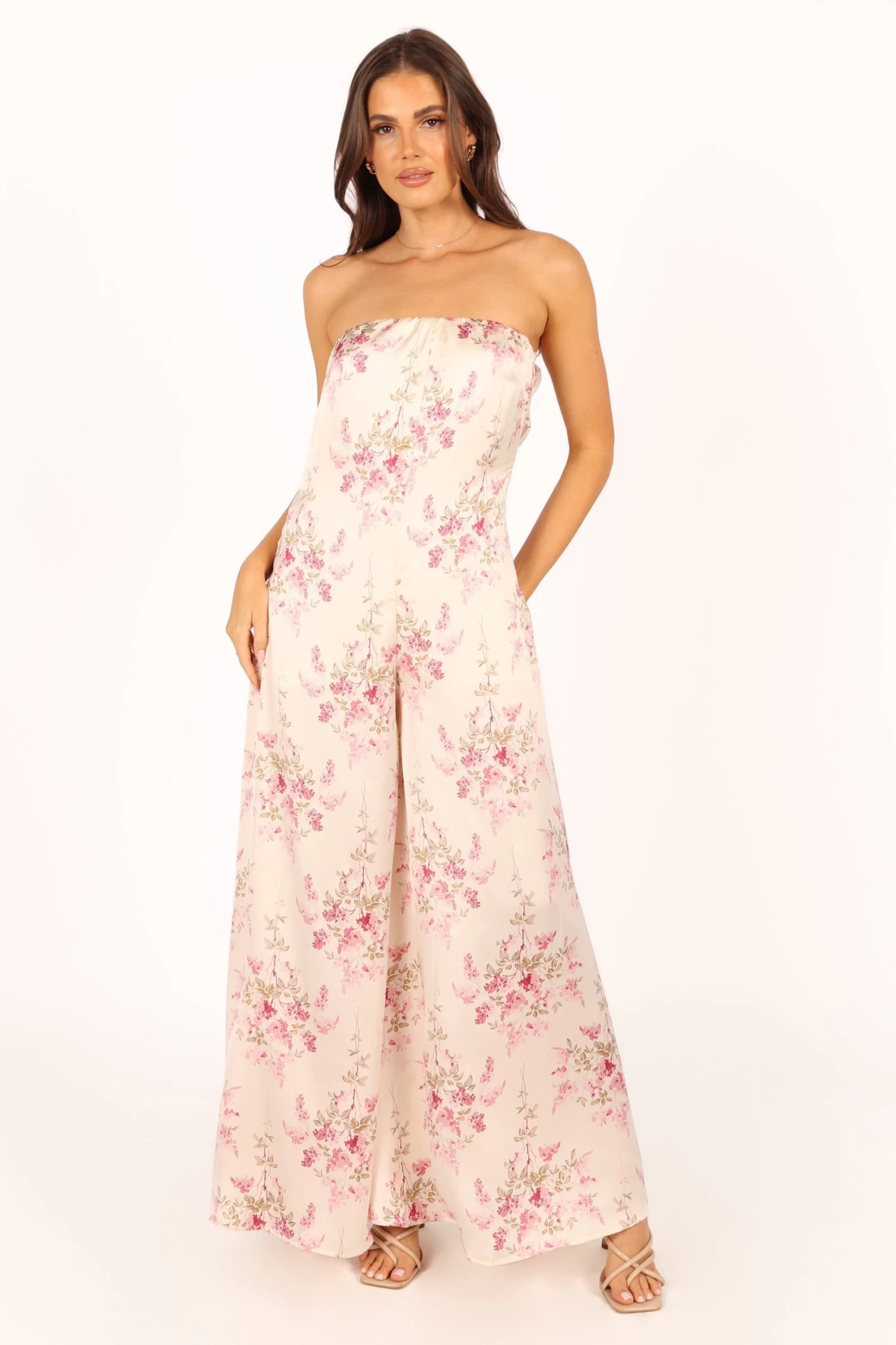 | DETAILS Elevate your wardrobe with a stylish and comfortable strapless floral jumpsuit that perfectly combines fashion and functionality. This elegant piece features a straight, elasticised neckline that flatters the shoulders and collarbones while providing a secure and comfortable fit.
