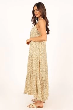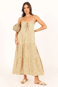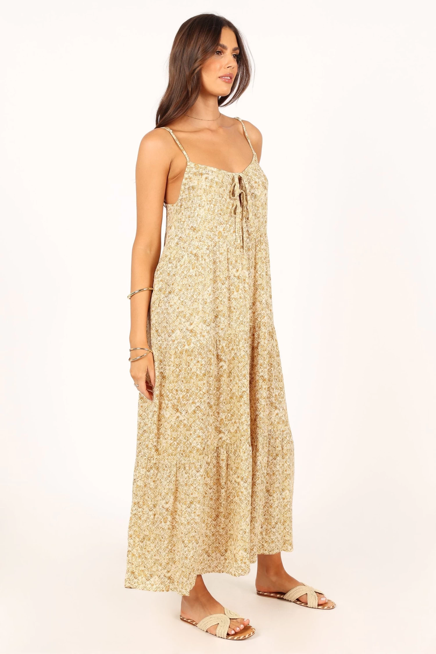 | DETAILS This maxi length dress is a must-have for the warm summer months! Its round neckline with double tie close, thin adjustable straps, and drop tiered skirt provide room to move around while still looking fabulous. It’s perfect for those hot days when you want to stay cool and comfortable!