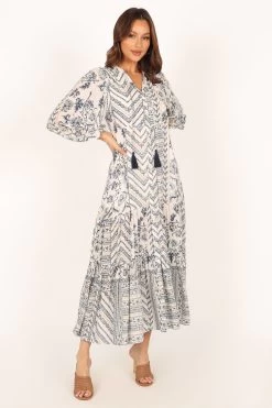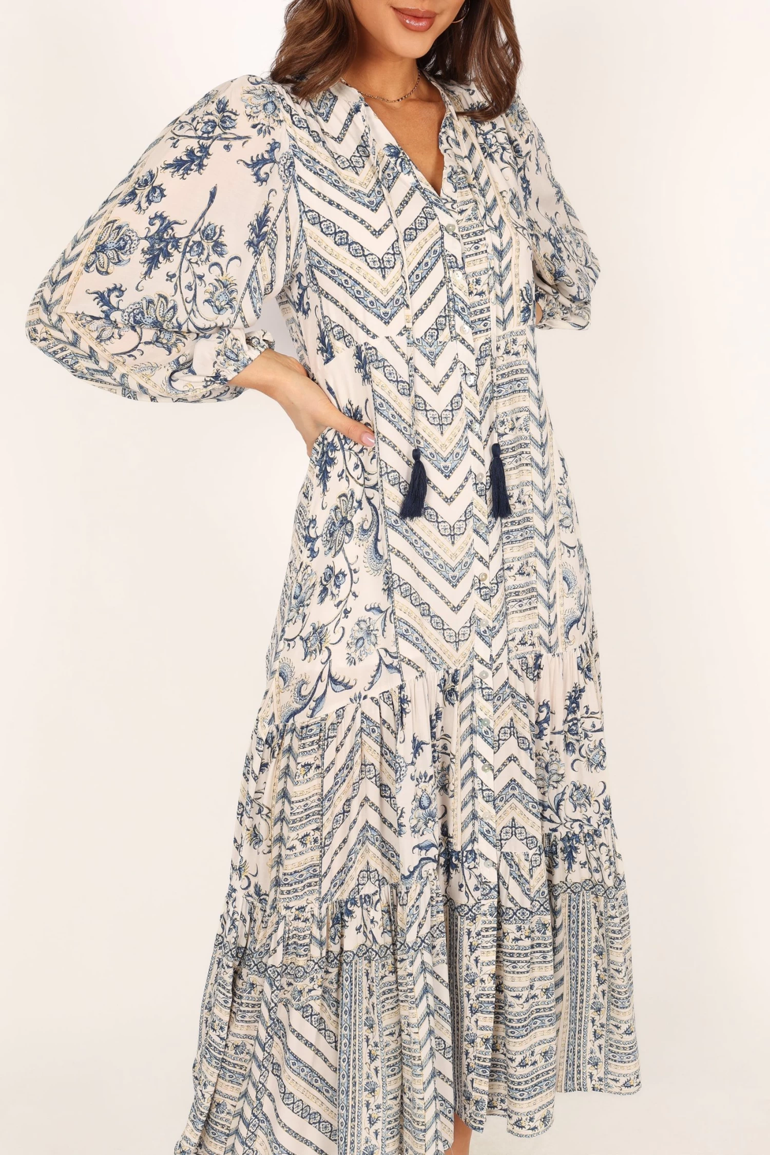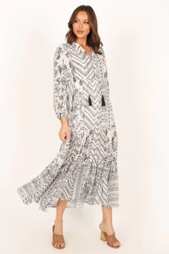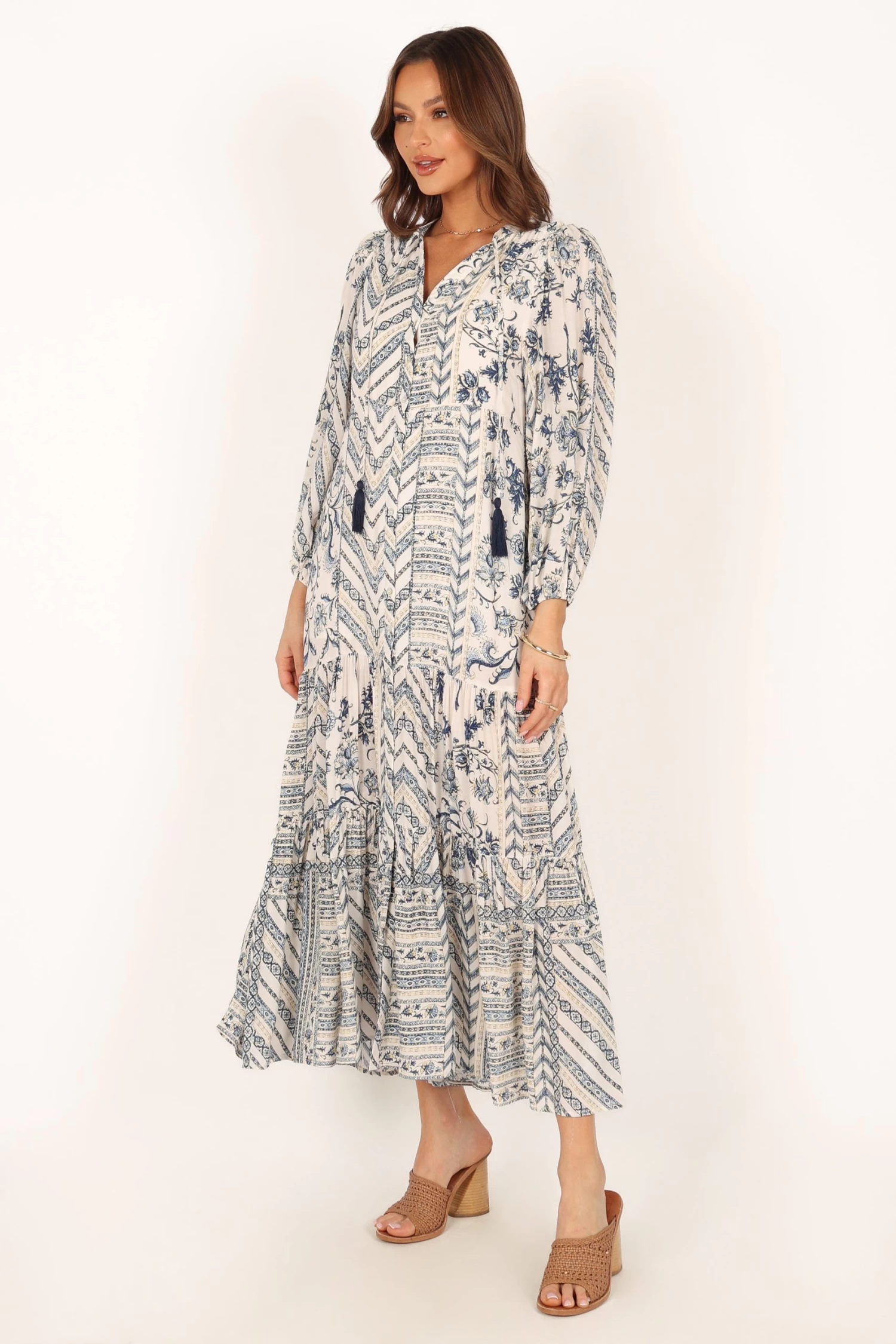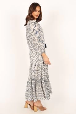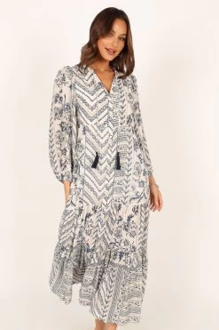 | DETAILS This maxi dress is perfect for making a statement this season! The round neckline with tie close and long sleeves with elasticised cuff will keep you comfortable all day. With a functional front button close, the relaxed fit ensures you’ll look great wherever you go.