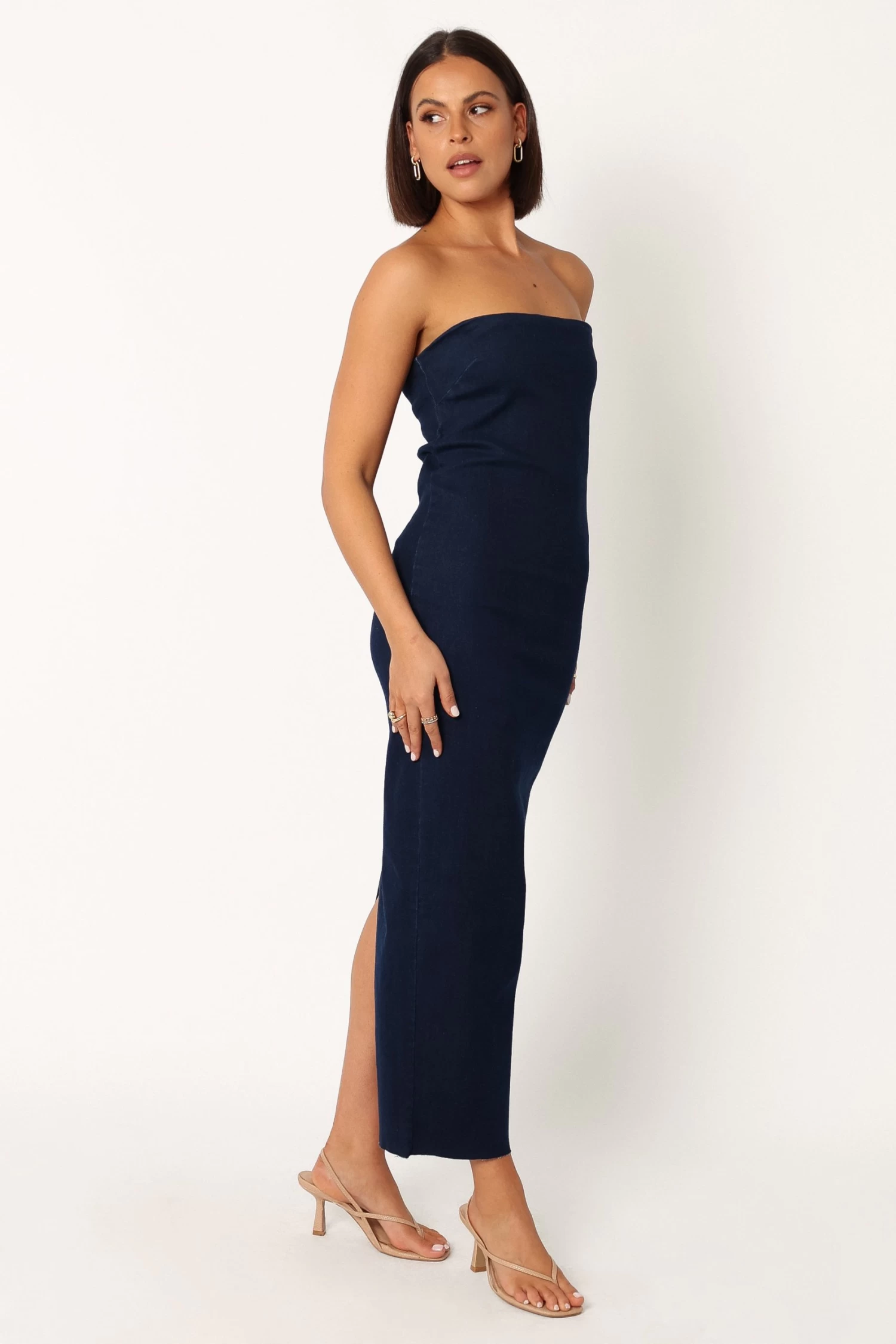 | DETAILS The perfect maxi length dress for making a statement this season is here. Introducing this stunning denim strapless style – the ideal choice for special occasions or casual days out.