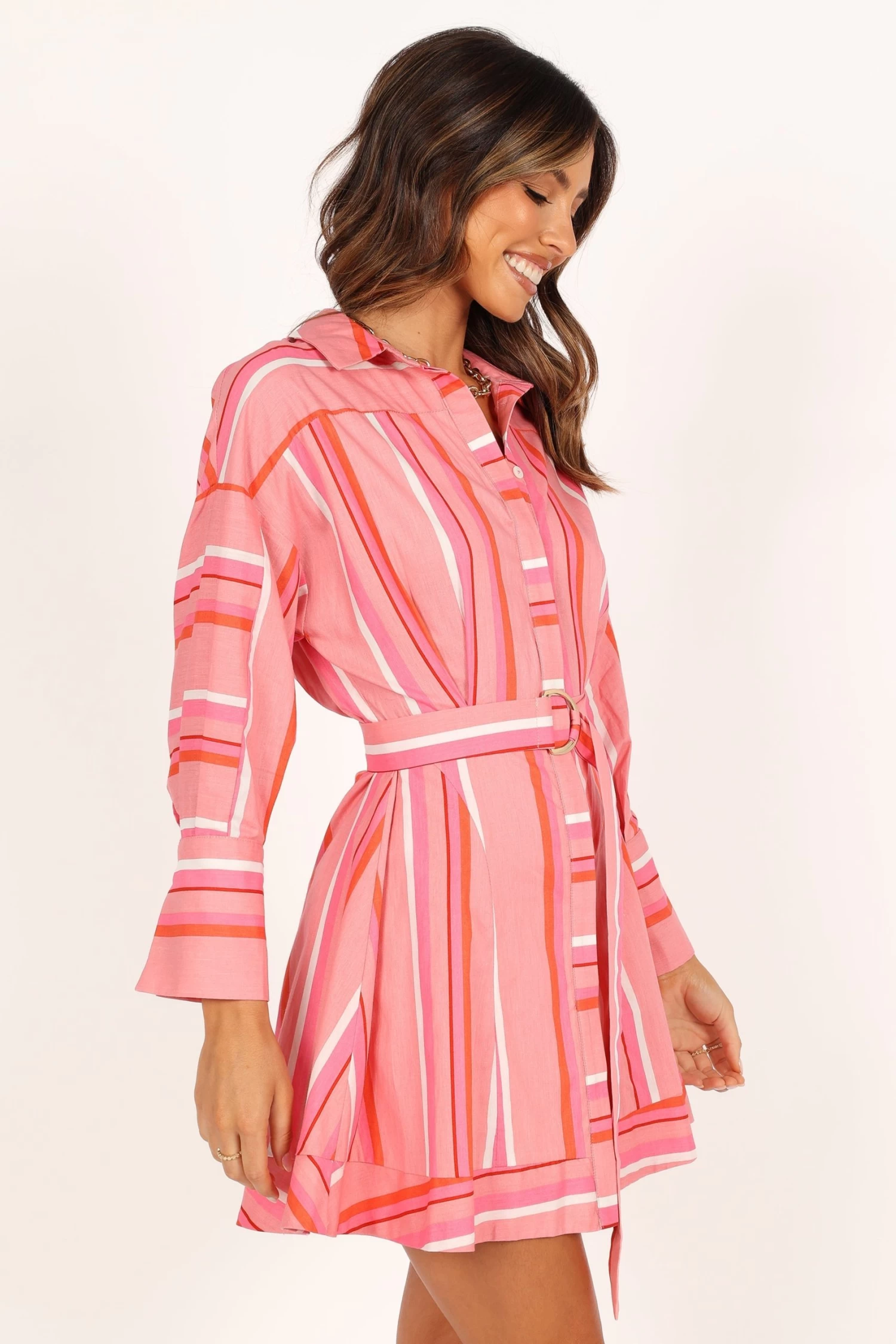 | DETAILS This mini dress is perfect for the modern girl looking to stay on trend! Featuring a mini length, spread collar, V neckline and long sleeves with a functional button close, this beautiful piece will have you feeling confident and chic.