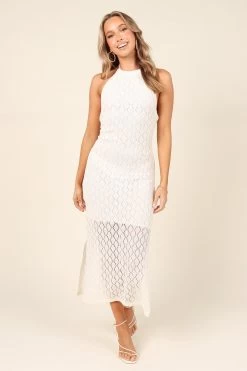 | DETAILS Are you ready to take your style to the max? Make a statement in this gorgeous crochet style dress. Featuring a maxi length, halter neckline with tie close, side split detail and open back design, it’s perfect for any special occasion or night out on the town.