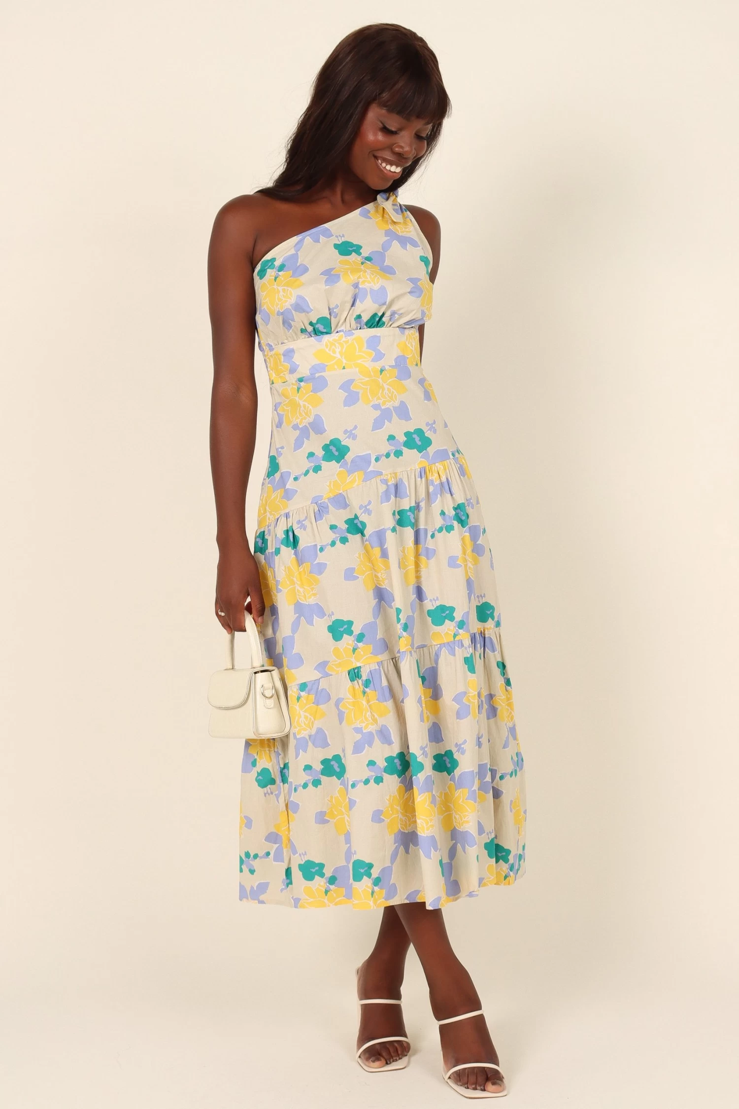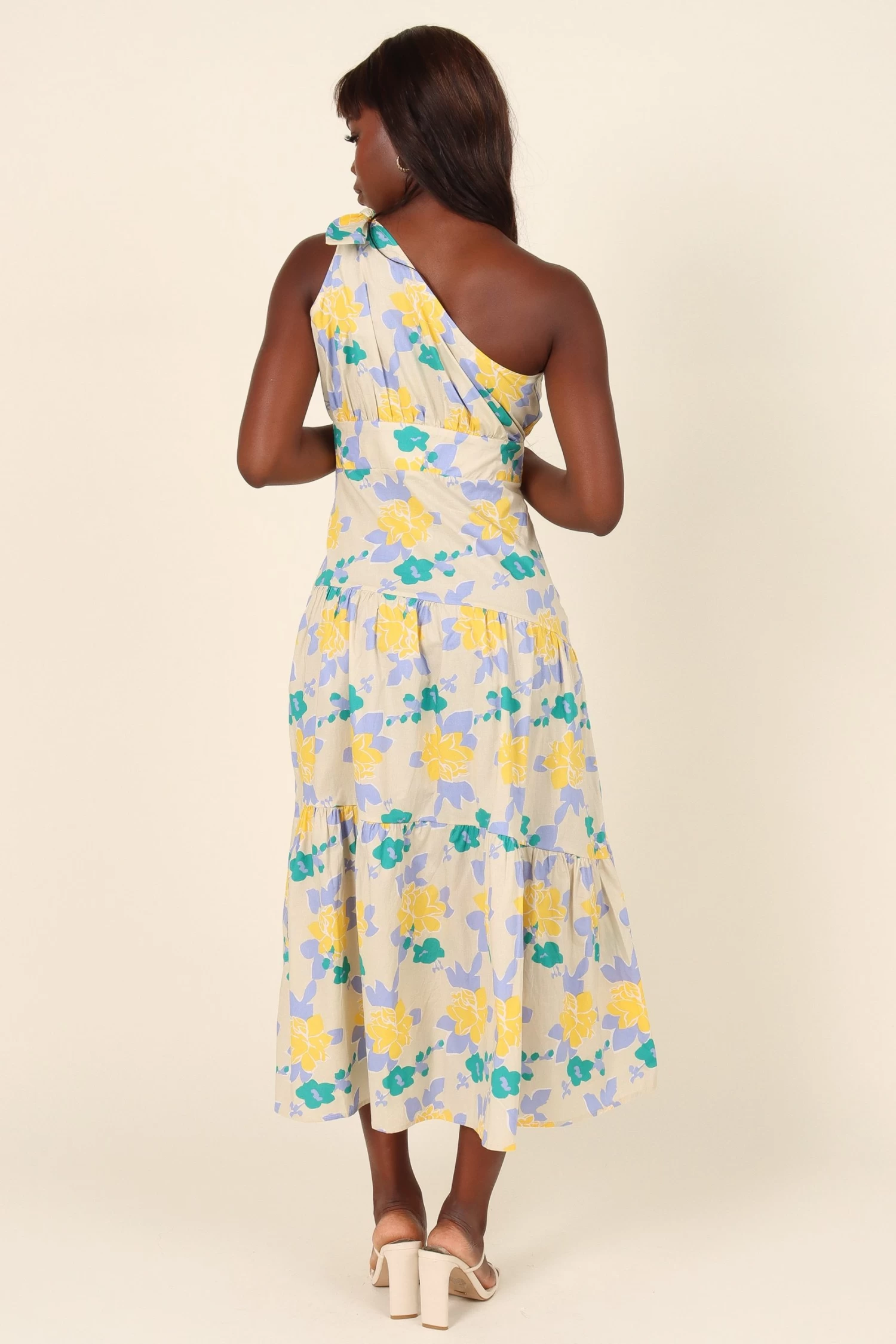 | DETAILS Get ready to bring some sunshine into your wardrobe with this charming one shoulder maxi dress! With a stylish shoulder tie feature and an invisible side zip, it’s easy to style this lovely piece. Plus, the drop tier a-line skirt gives you a flirty look that will make heads turn.