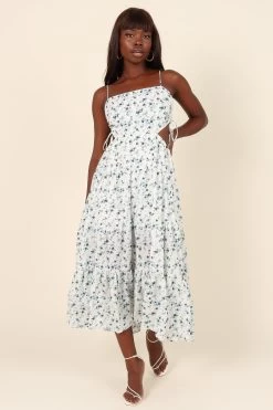 | DETAILS This gorgeous dress is sure to turn heads, featuring a flattering square neckline and cross-back straps with tie close. With the added ruched side with drawstring detail and drop tier skirt , this timeless design can be dressed up or down for any occasion, making it the perfect go-to option for summer days and nights.