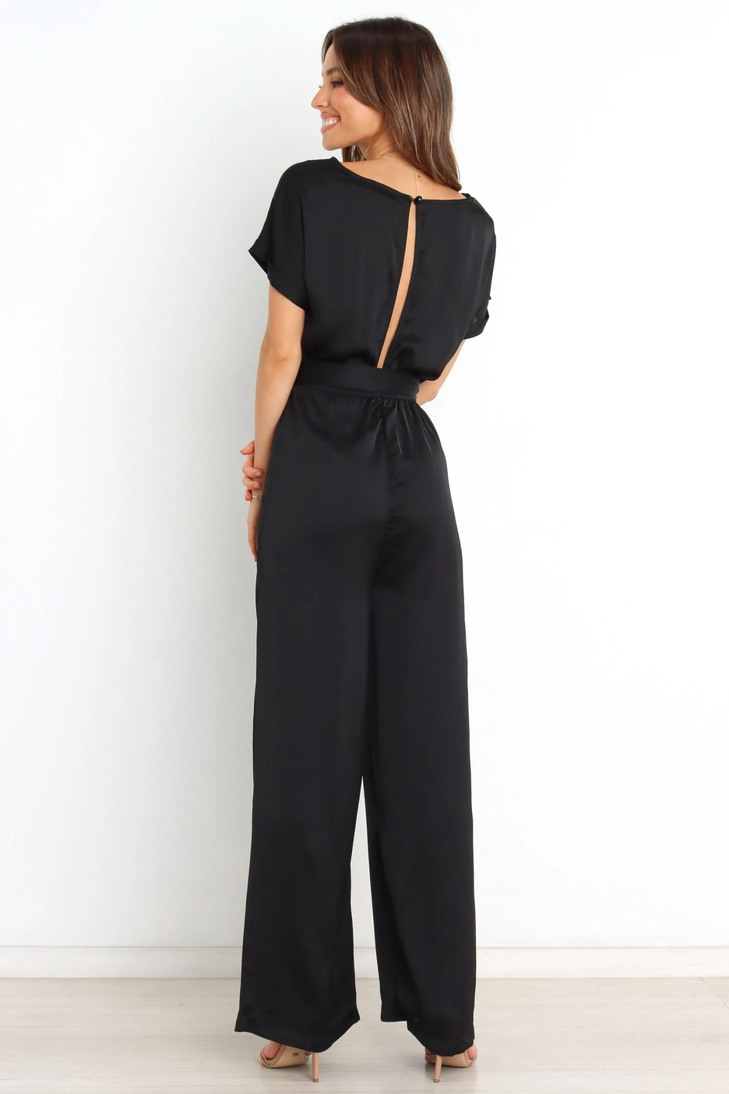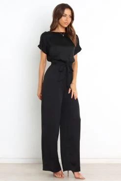 | DETAILS Add a touch of sophistication to your wardrobe with this stunning wide leg jumpsuit! This stylish piece features a round neckline, short sleeves and a back keyhole with button closure. There’s also an invisible back zip for easy on/off dressing plus belt loops with a detachable waist tie.