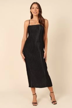 | DETAILS Look sophisticated and stylish at your next party in this classic maxi dress. Featuring a square neckline, thin adjustable straps and an ultra-flattering plissé material for a beautiful drape. If you are in between sizes, we suggest selecting the size down due to the relaxed fit of this dress.Â