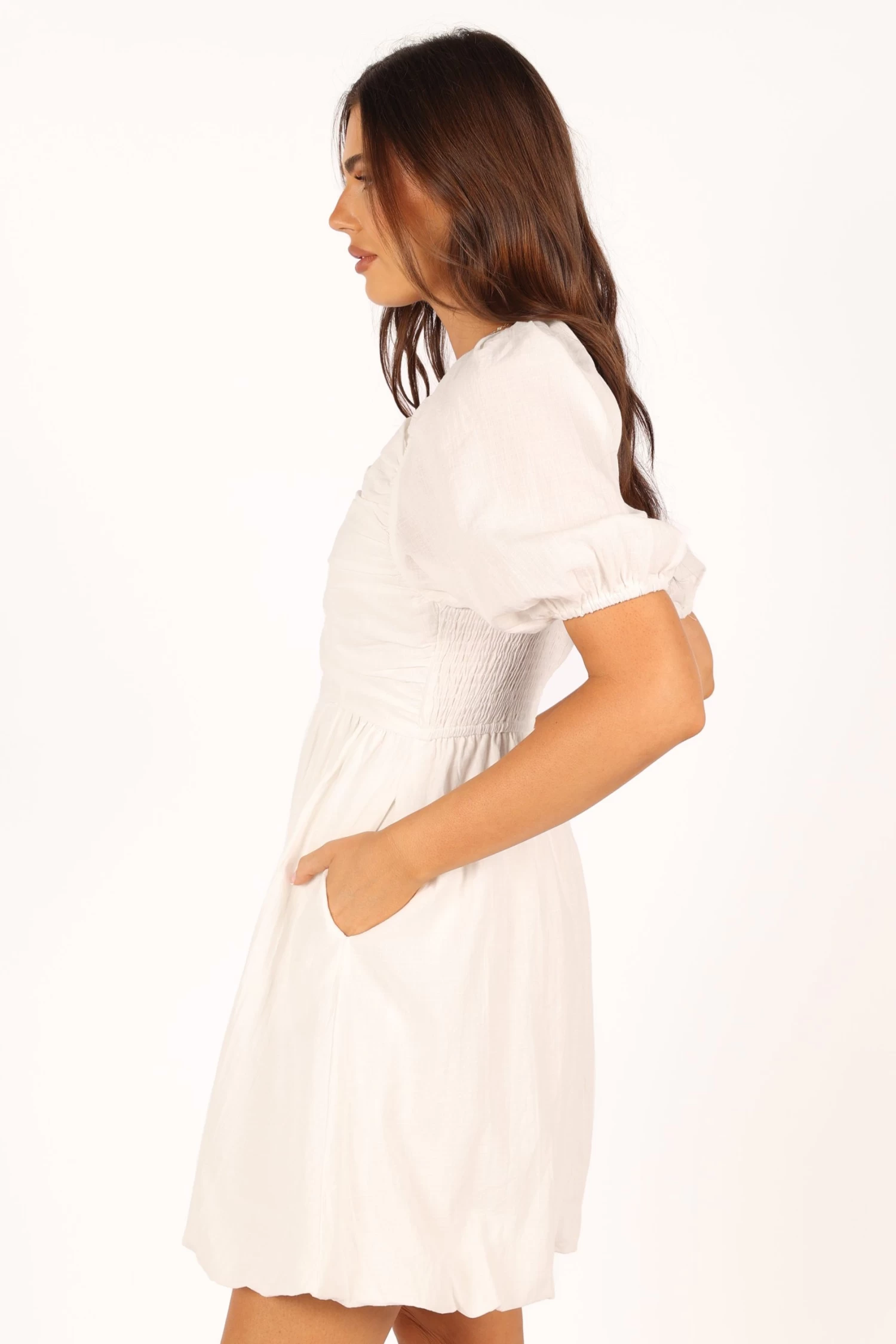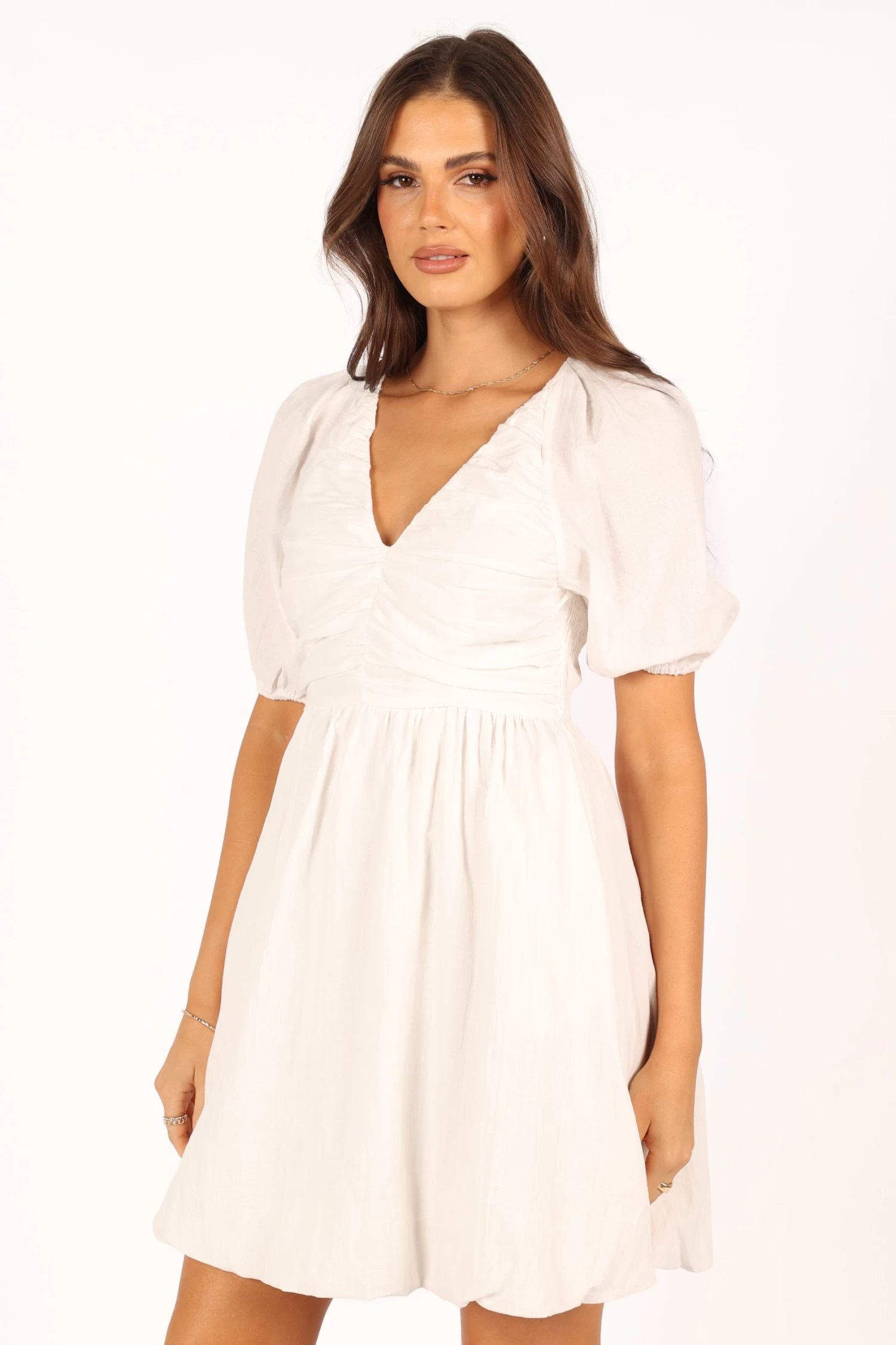 | DETAILS This above knee length dress is perfect for any summer occasion! With its short sleeves with elasticated cuffs, front gathered detail at the bust, and a back elastic waistband, you’ll feel as fashionable as ever.