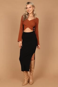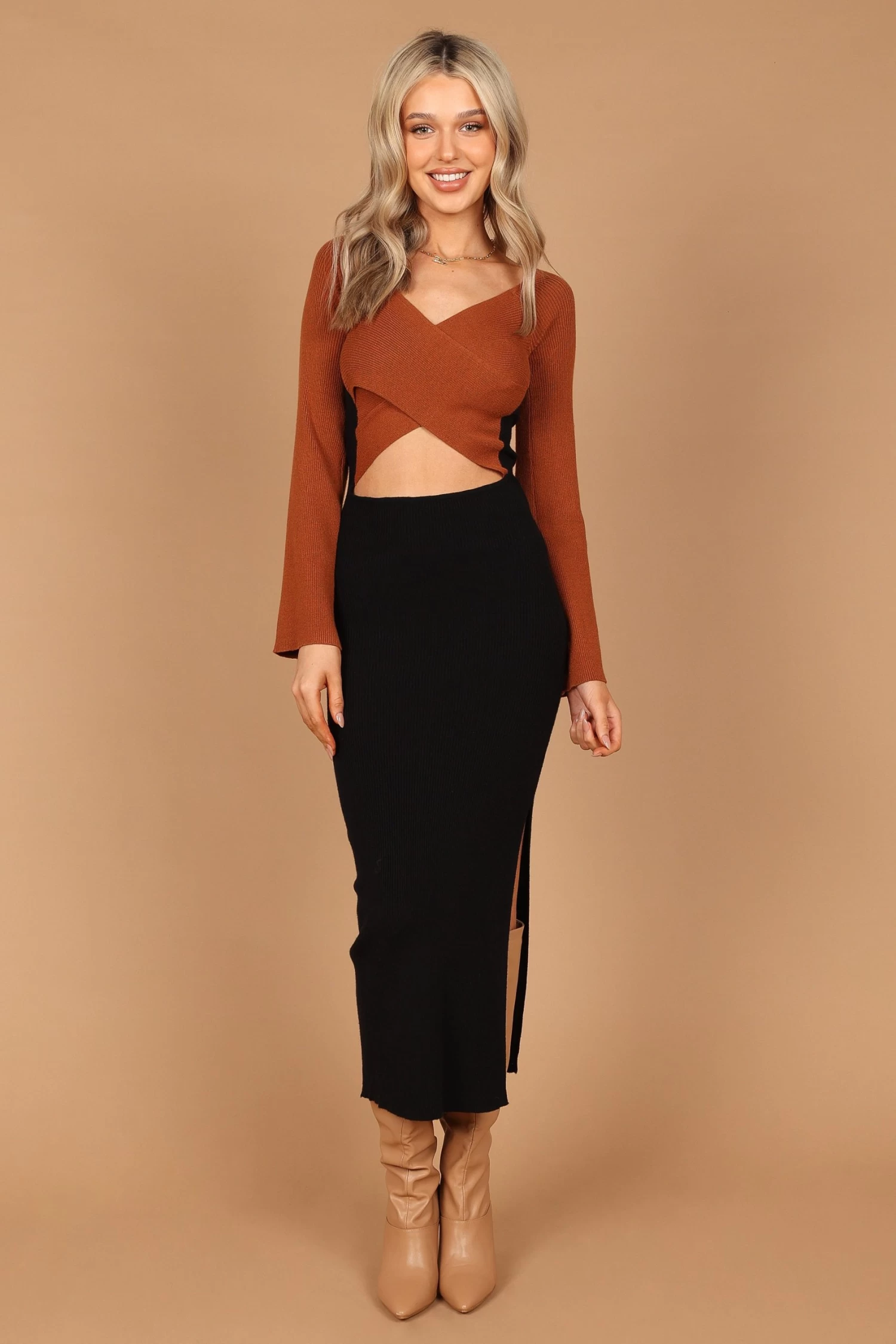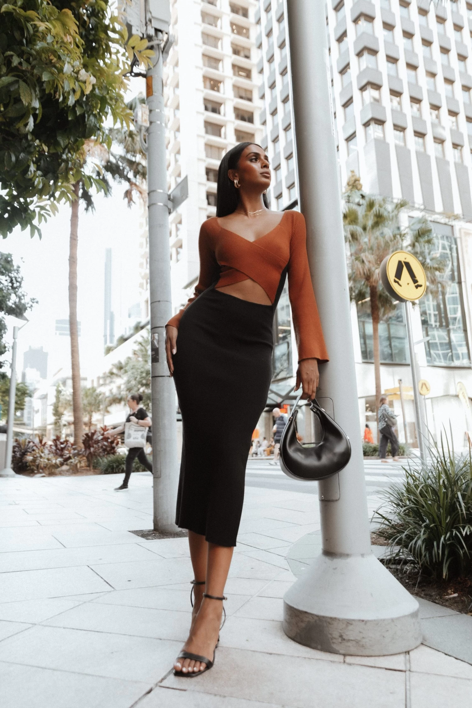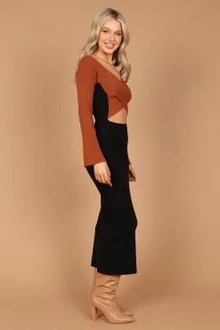 Luxxe Long Sleeve Maxi Knit Dress – Black/Tan