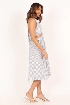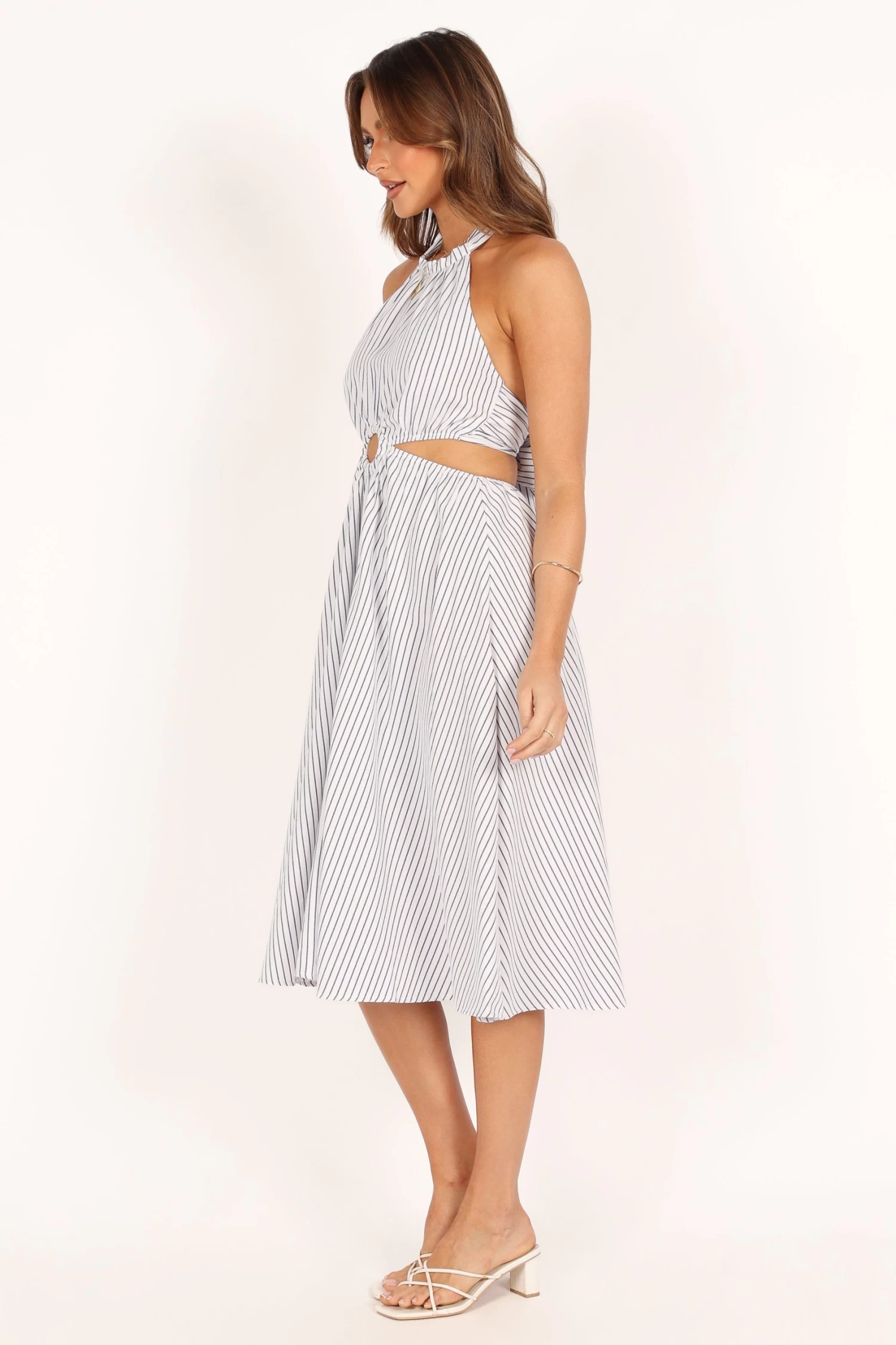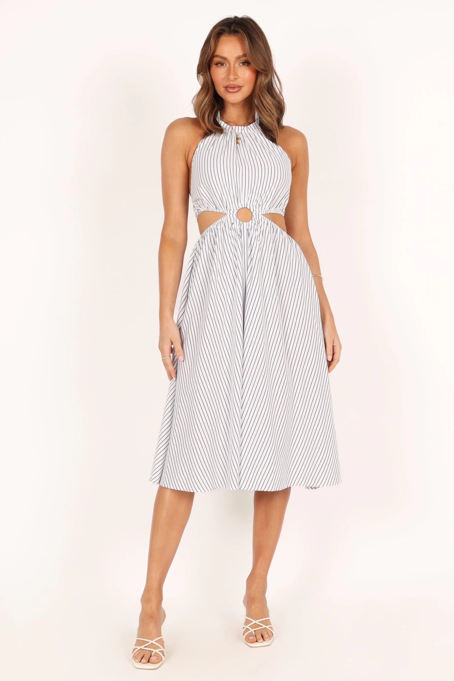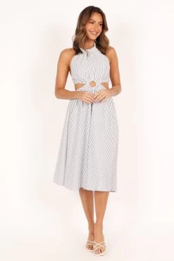 | DETAILS Look absolutely amazing in this stunning midi length dress! The halterneck neckline with a tie close will hug your curves and show off your silhouette. The unique ring detail on the front of the dress gives it an extra pop of style that you’re sure to love.