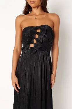 | DETAILS Introducing the ultimate midi dress for all your fashion-forward needs! With a strapless style and straight neckline, this dress is perfect for any occasion. It also features a bow feature on the bodice with cut out detail that adds an extra touch of sophistication to your look.