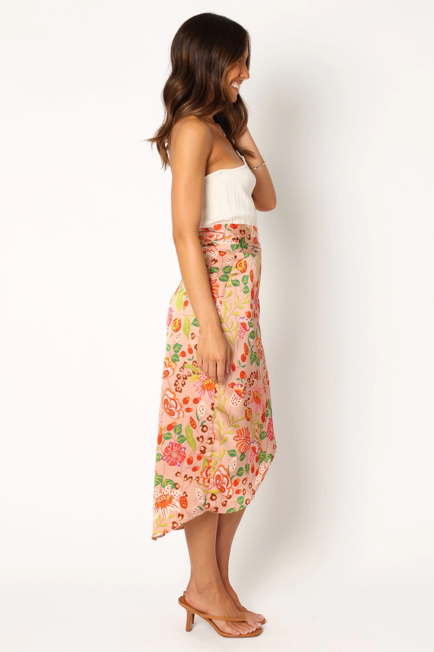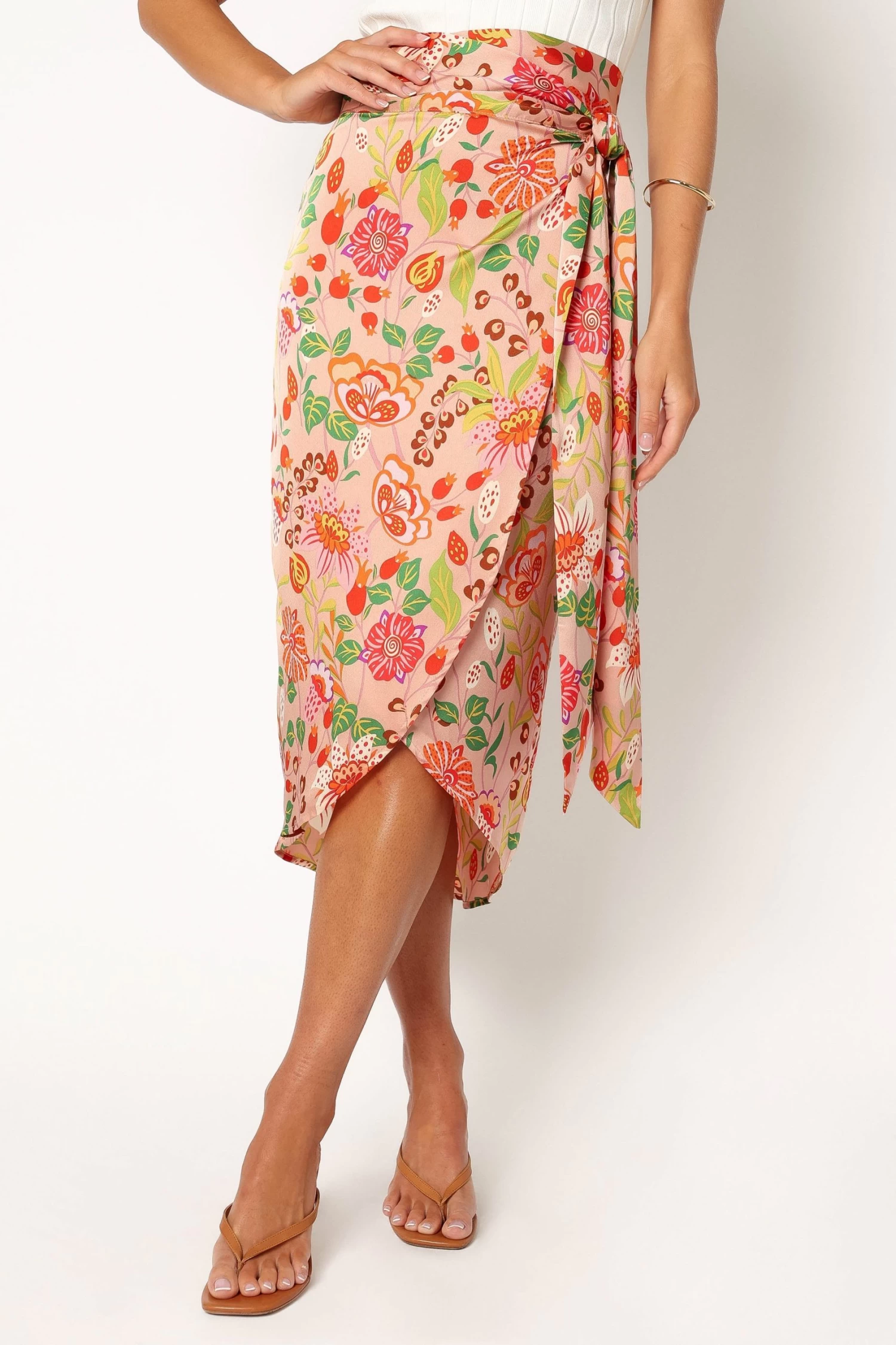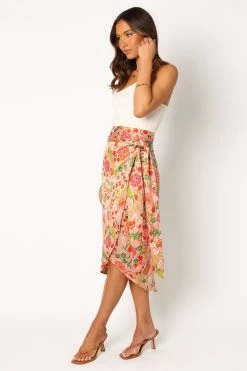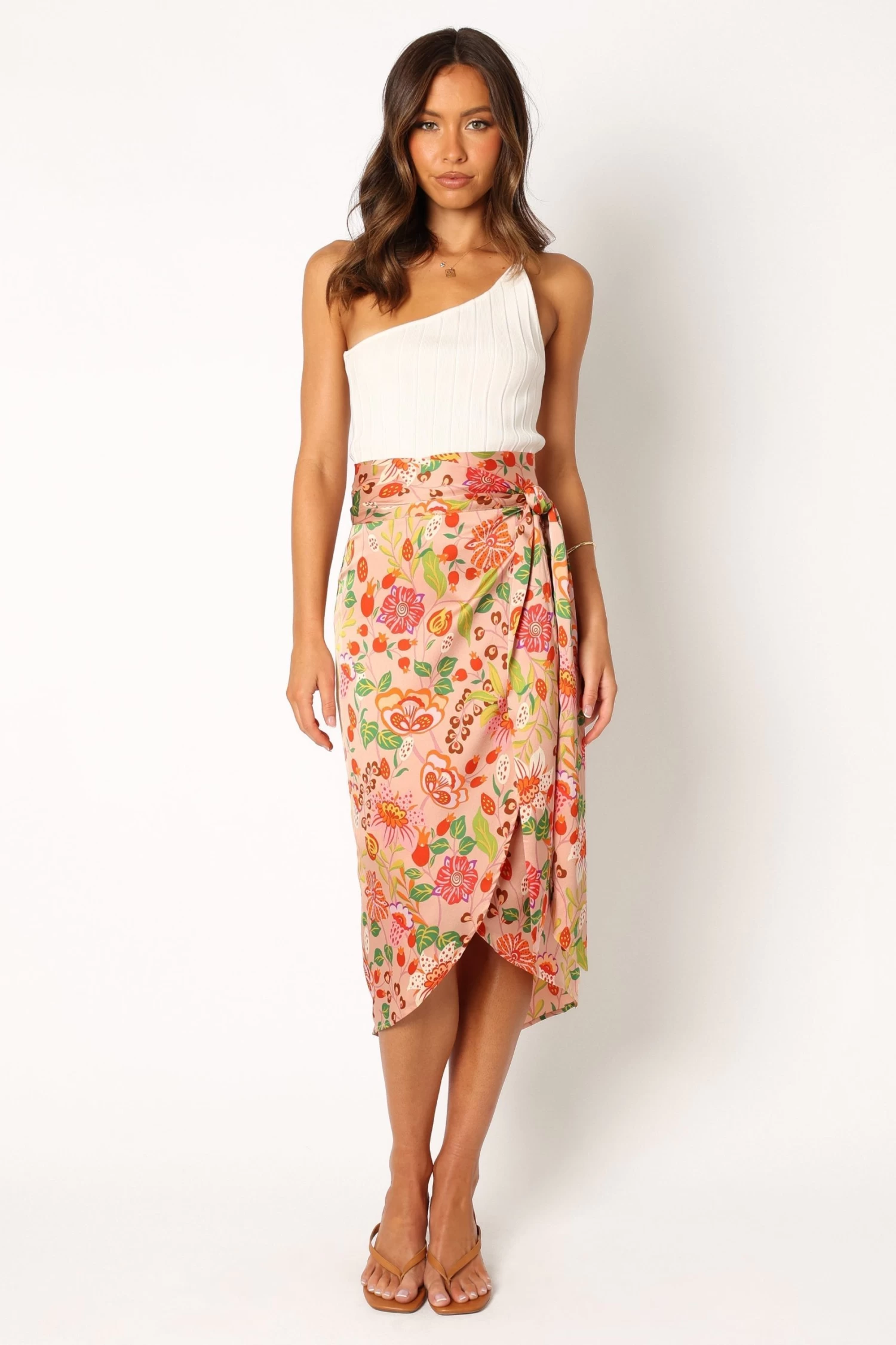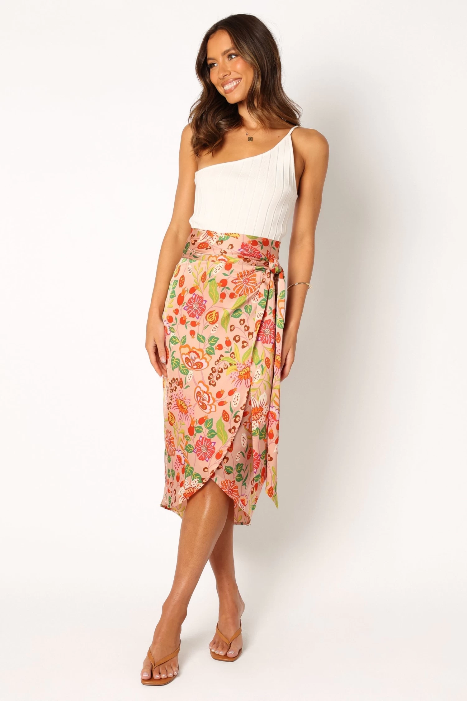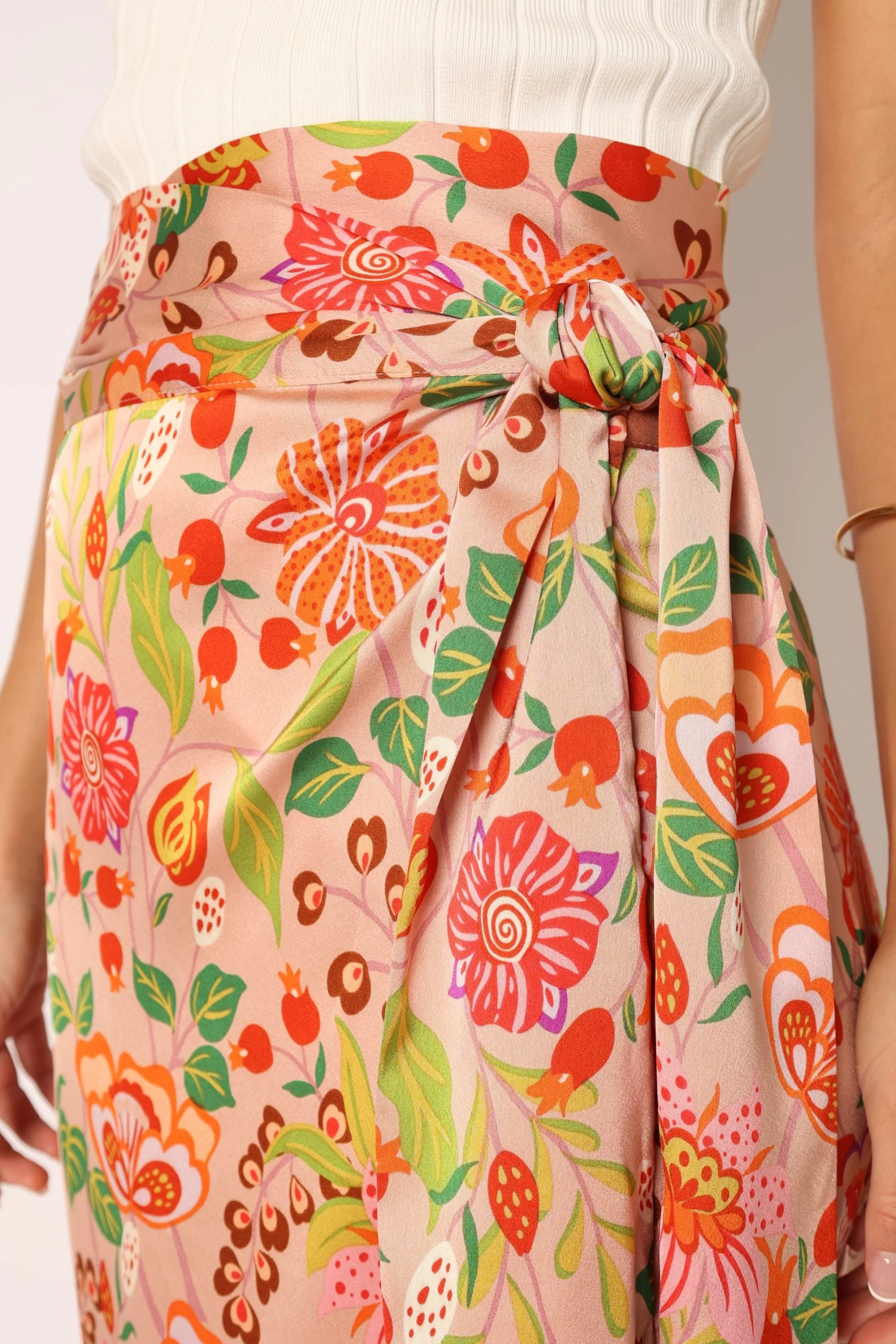 | DETAILS Make a statement this season with our eye-catching Morgan Wrap Skirt! This wrap style skirt features an attached waist tie, a flattering asymmetrical hemline and a bold floral print design. We love the soft satin feel of this piece – perfect for adding a touch of femininity to any look.
