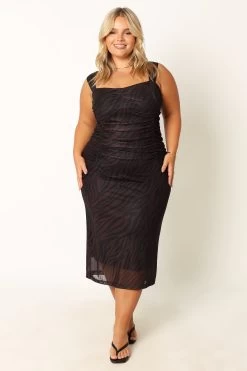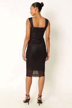 | DETAILS This gorgeous midi dress is perfect for any special occasion. Featuring a sweetheart neckline, non-adjustable straps and a bodycon fit that flatters your figure, this dress stands out with its gathered ruching detail on the body and soft mesh overlay.