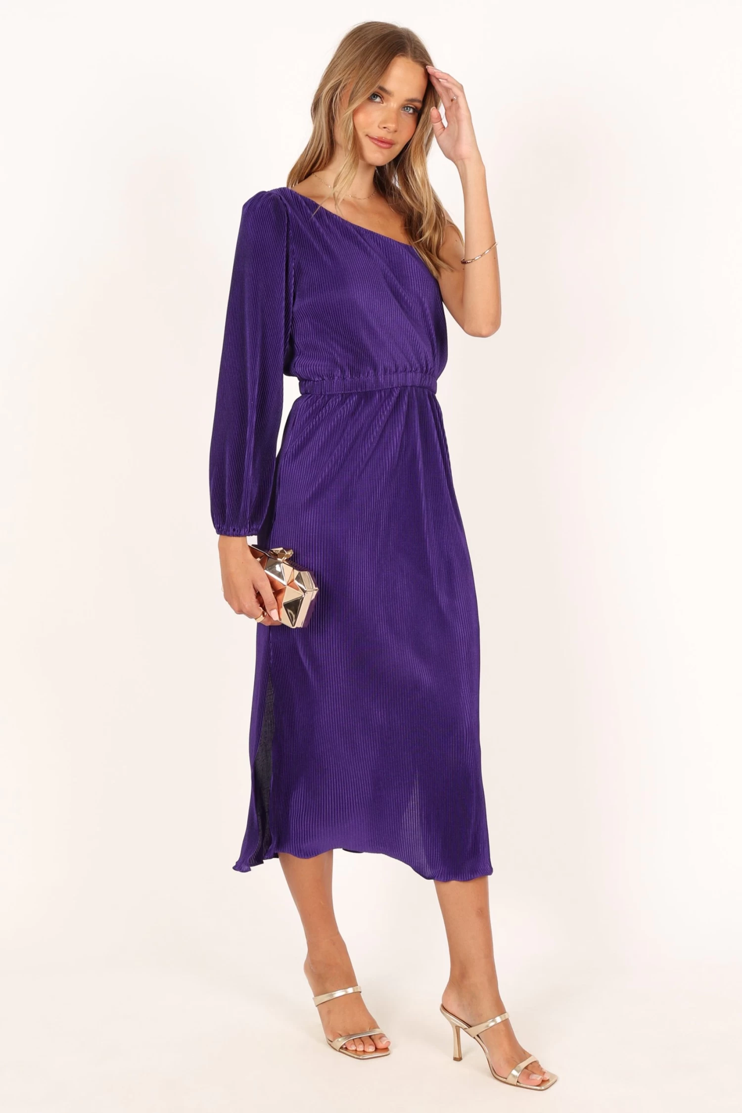 | DETAILS Choose a one shoulder style dress for the perfect balance of flirty and elegant. This midi length dress has an asymmetric neckline that’s sure to make a statement, while long sleeve with elasticised cuff adds drama to your silhouette. If you are in between sizes, we suggest selecting the size down due to the relaxed fit of this dress.