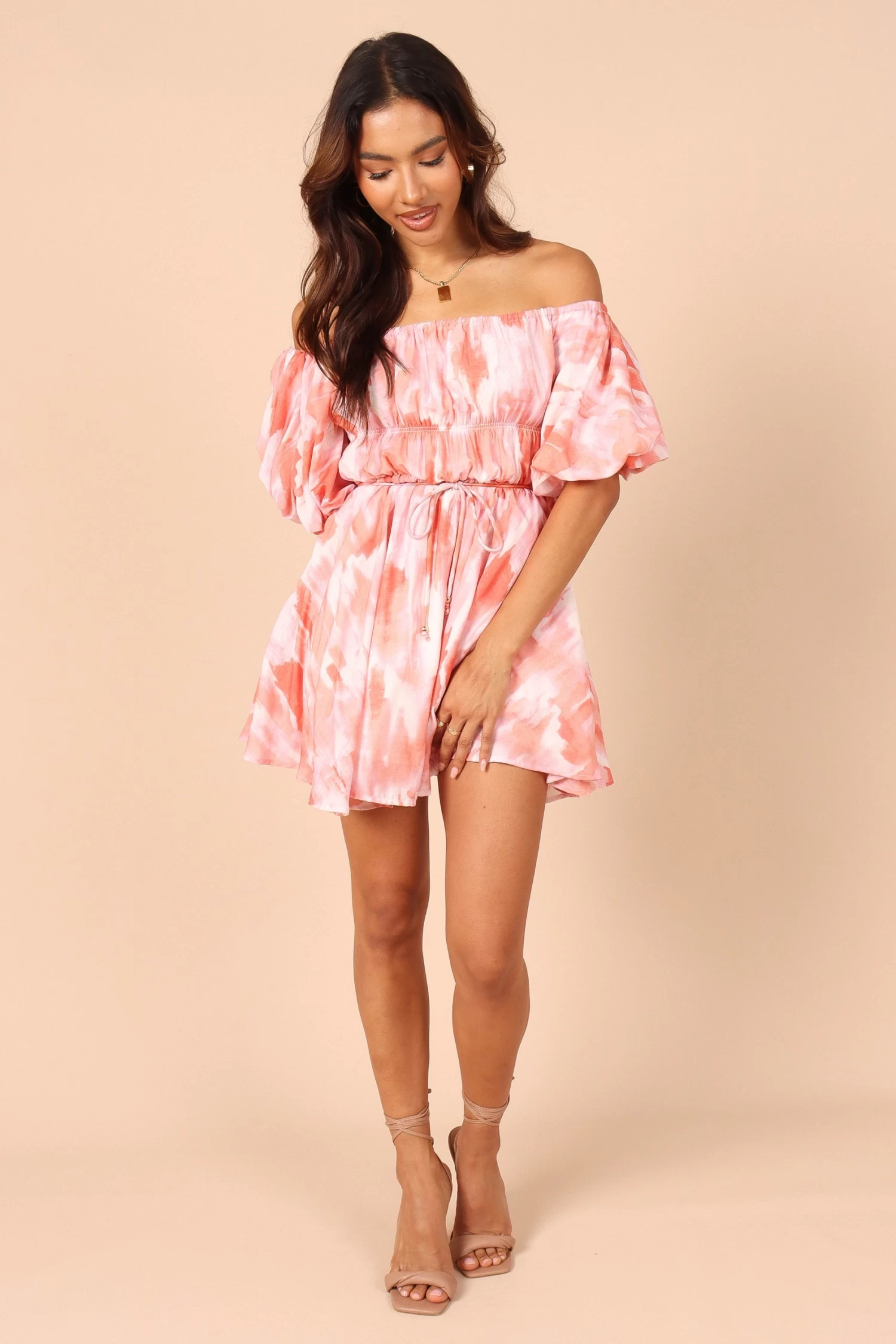 | DETAILS Are you ready to party? Step out in style in this off shoulder mini dress. With a super cute elasticised neckline, short sleeves with elasticised cuffs and belt loops for your favourite accessories, it’s perfect for any special occasion.