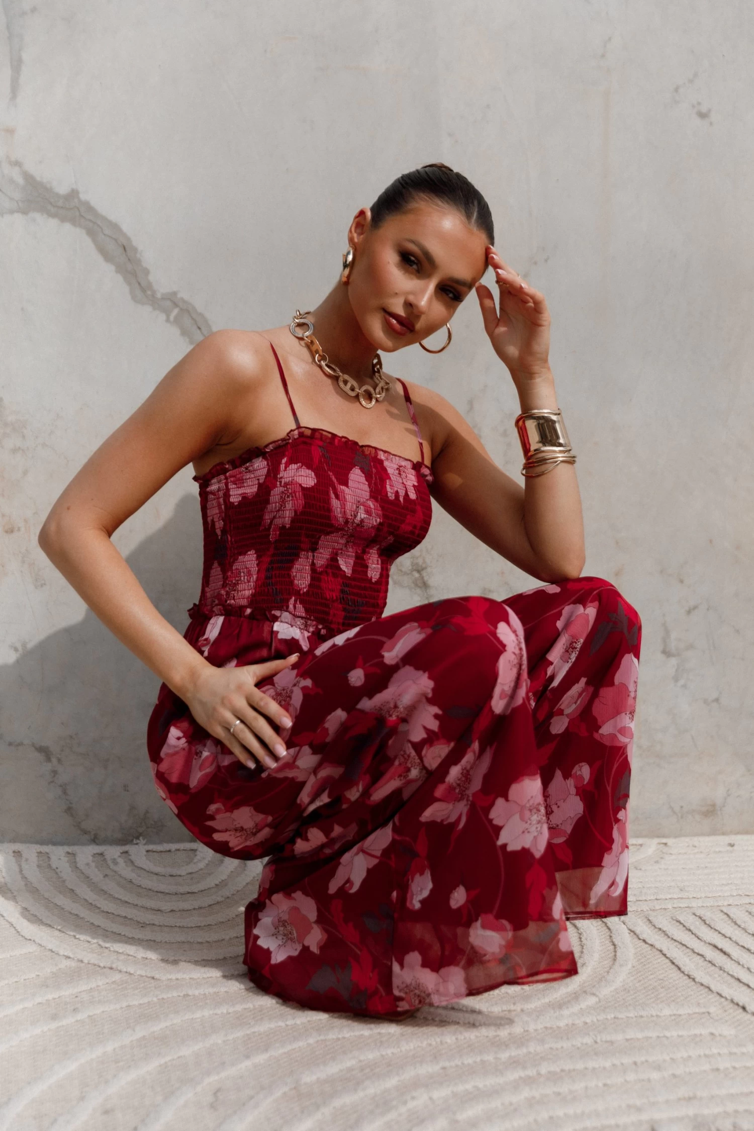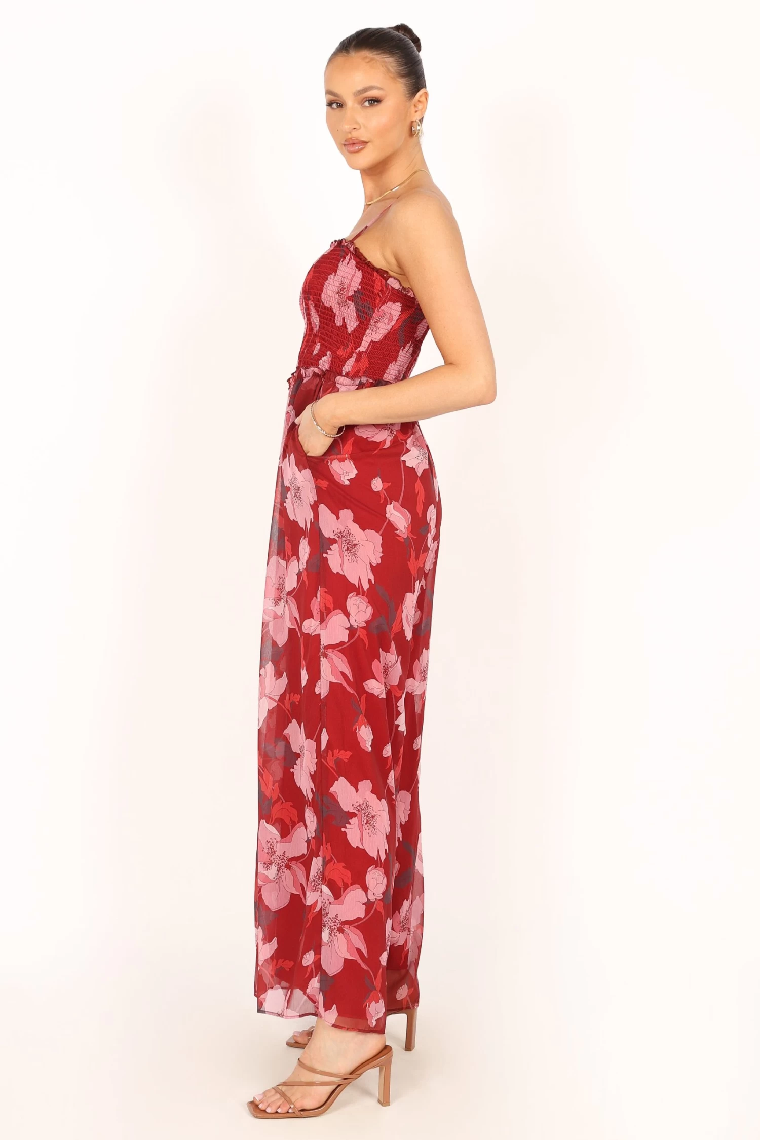 | DETAILS This stunning full-length floral jumpsuit makes for an incredibly stylish and versatile addition to any wardrobe. Made for comfort and practicality, this graceful outfit features a flattering square neckline and adjustable shoulder straps, allowing for a customisable fit that perfectly accentuates the wearer’s shape.
