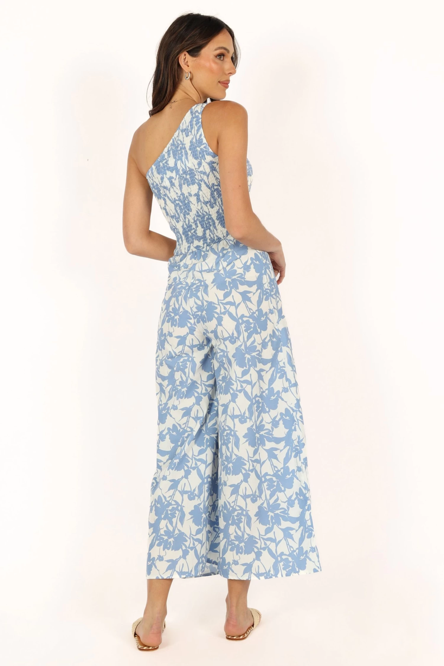 | DETAILS The perfect one shoulder jumpsuit is here! This stunning piece features a shirred bodice and side invisible zip for easy access. With this beautiful jumpsuit, you’ll be looking chic and feeling fabulous all night long.