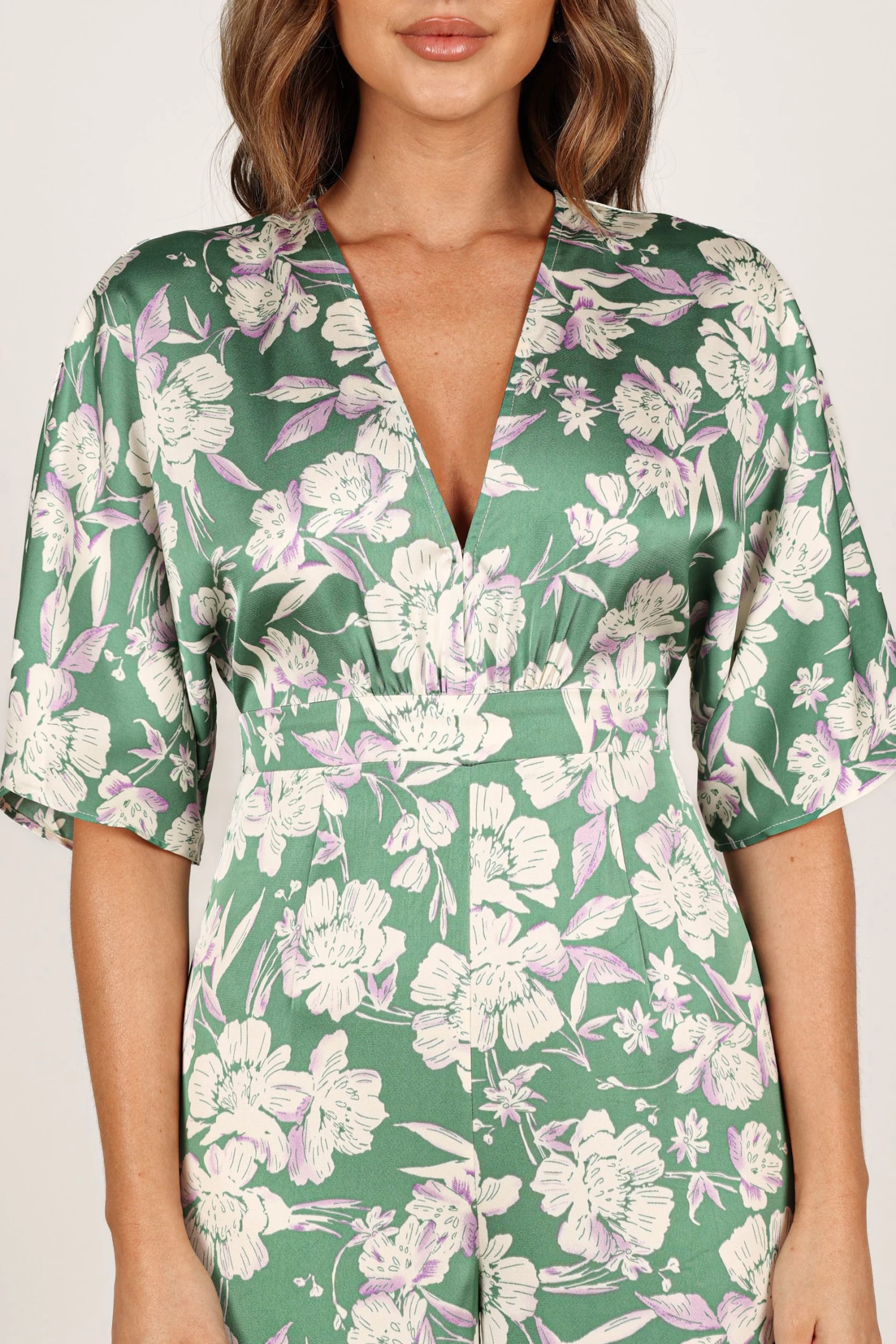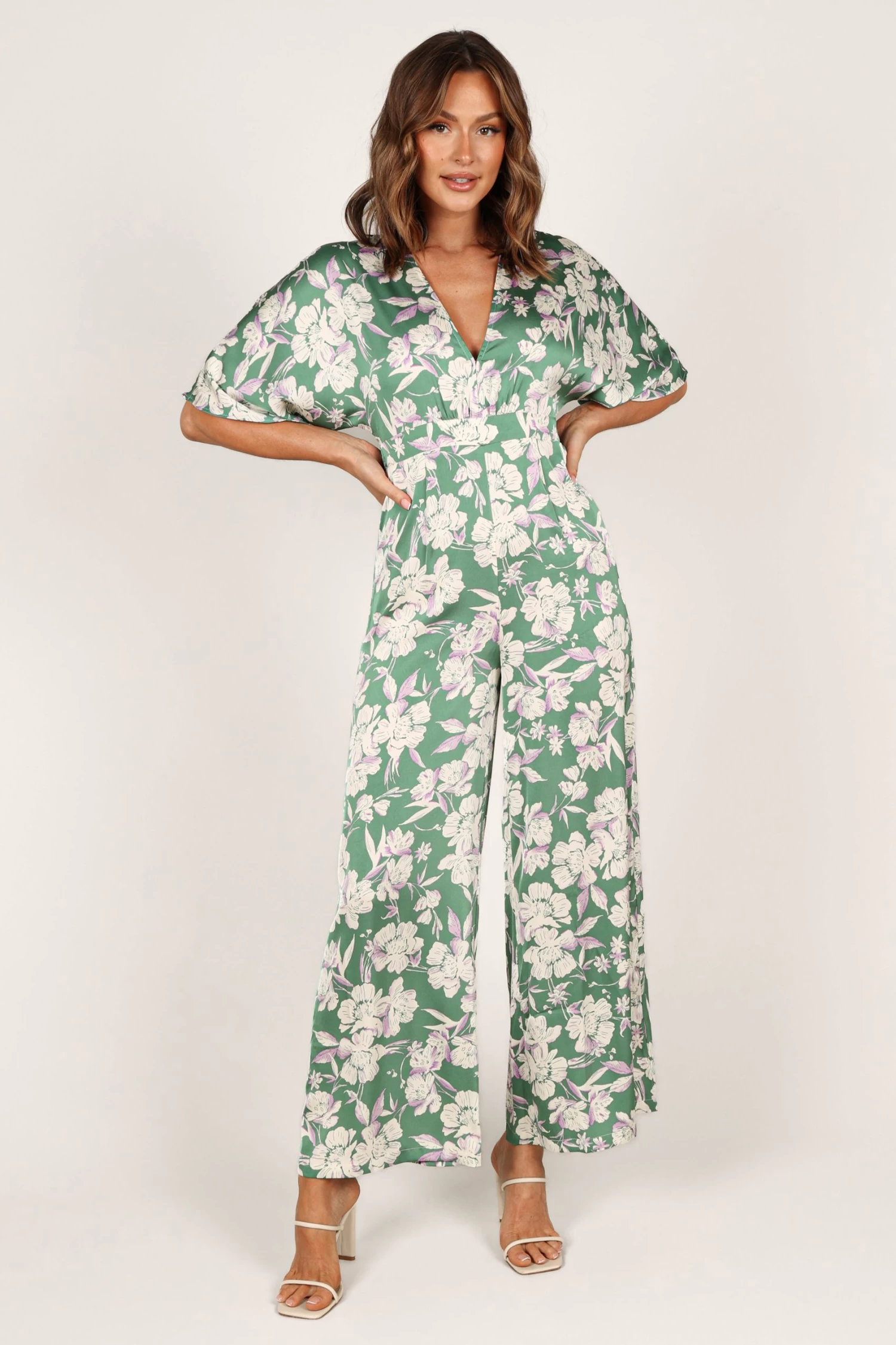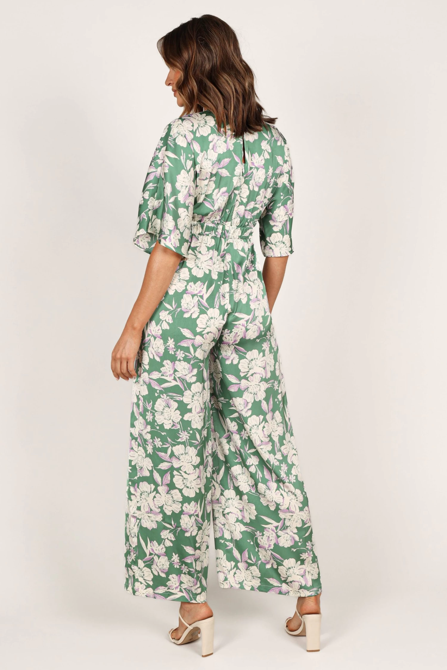 | DETAILS Step into the spotlight wearing our stunning wide leg jumpsuit! It features a flattering v neckline with a clasp closure, short sleeves and an invisible zip at the back for easy wear. The back neck opening is detailed with a button close and an elasticised waist to give you that perfect fit.